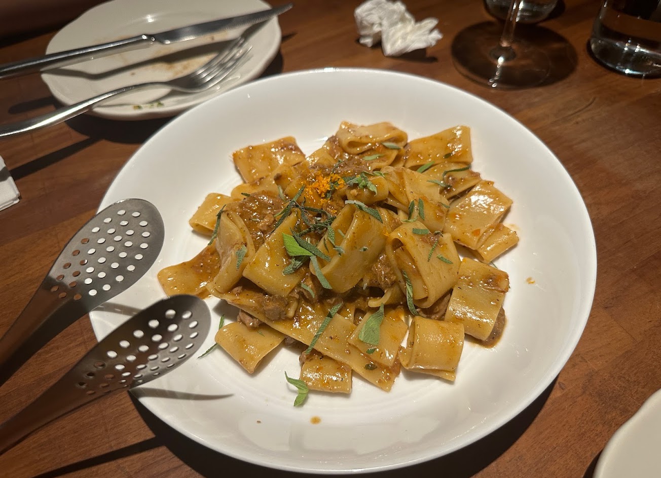 落葵胡椒乳酪細扁麵320元➡️麵條心是硬的,醬汁有收乾,拌羊奶起司還挺特別的,可以吃到羊奶味,好吃但不推,嚐鮮可以,是挺挑人吃的味道。
