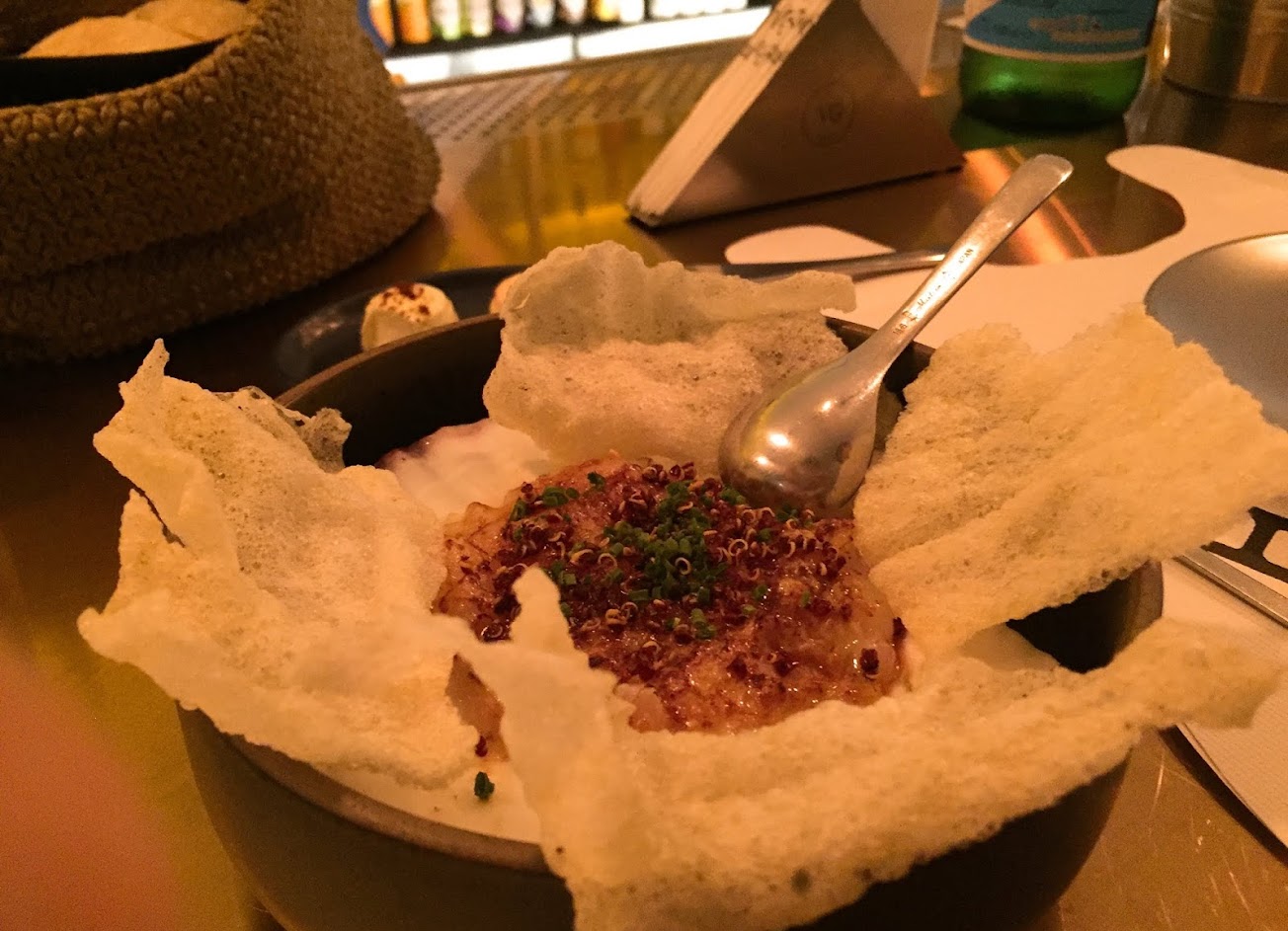 讓人驚艷的調酒味道,點了三杯:泰好喝、卵、漫步森林每一杯都讓人驚喜,不是在其他酒吧會喝到的味道。不過酒精偏低,有點在喝飲料的錯覺。 炙燒干貝塔塔也意外好吃。熱海鮮份量蠻多,適合三人的份量。龍蝦好吃,但其他海鮮比較沒甚麼值得圈點。看評價點了檸檬塔,各種口感和味道堆疊在一起,又是一陣驚艷。