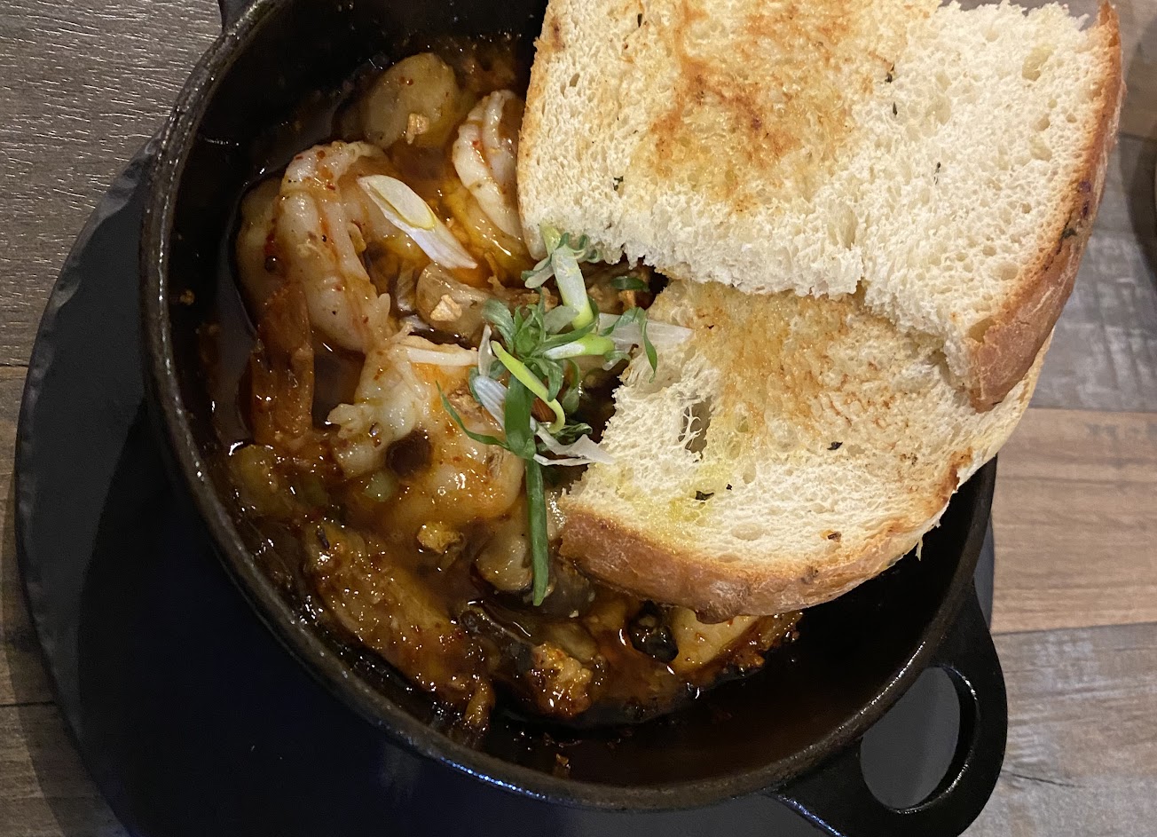 炸了一整顆的檸檬錫蘭紅茶-喝起來像檸檬乾的味道,跟我想像的檸檬紅茶完全不一樣。 你/妳的愛-有點洗碗精的味道,喝了幾口就不喝了:( 鍋烤蒜味辣蝦-我看了幾個部落客跟店家ig 的照片,都是蝦子,啊我們的是蝦仁⋯⋯完全不同了吧⋯⋯店家也沒有主動詢問,後面的義大利麵給的也是蝦子,所以為何會這樣我們無從得知☺️