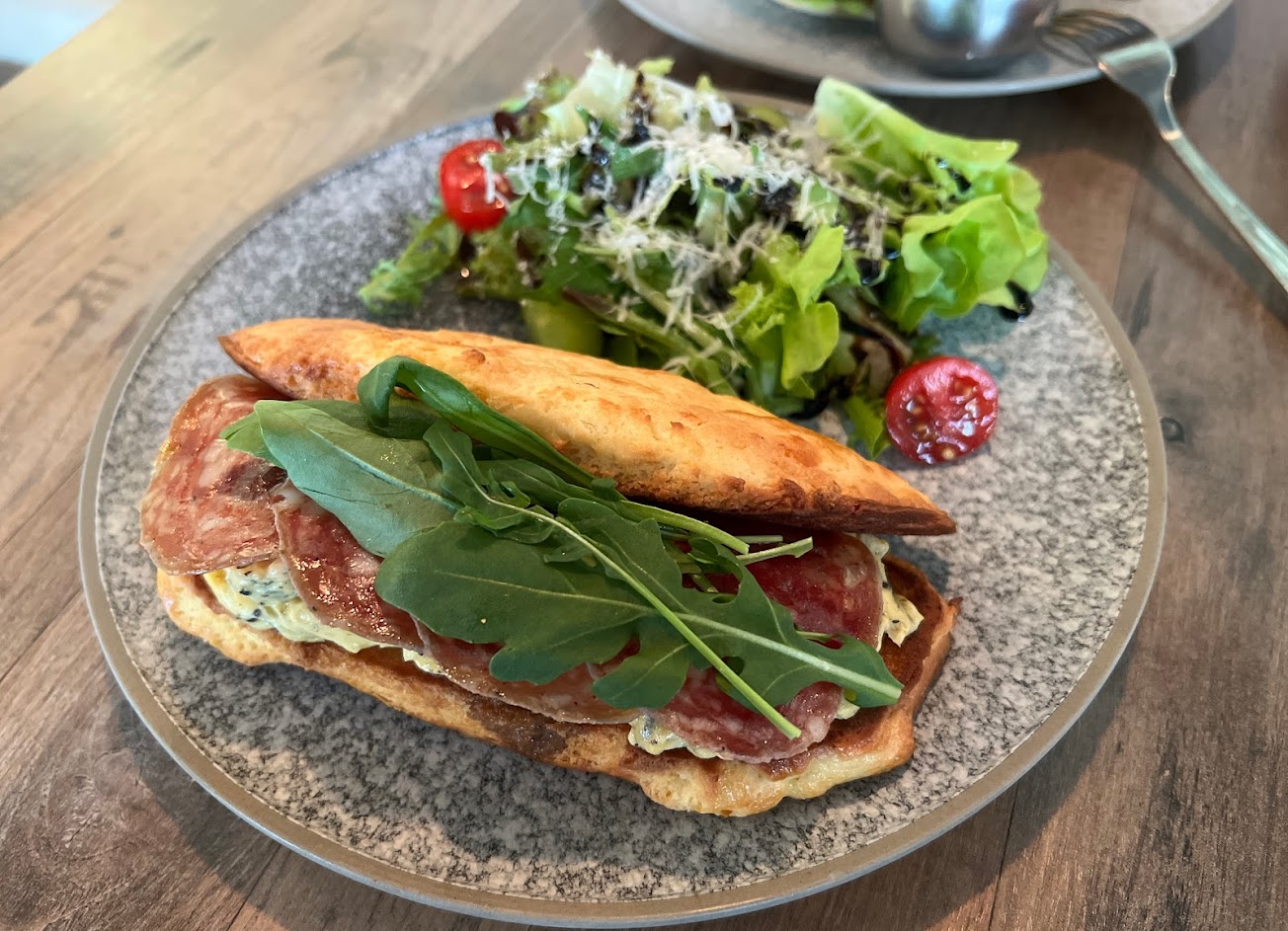 公園旁街角的小西式餐廳。服務人員不多,悠閑悠閑的。早午餐豐盛,沙拉很特別。主餐應該也很不錯。青田街區輕鬆好吃的去處。