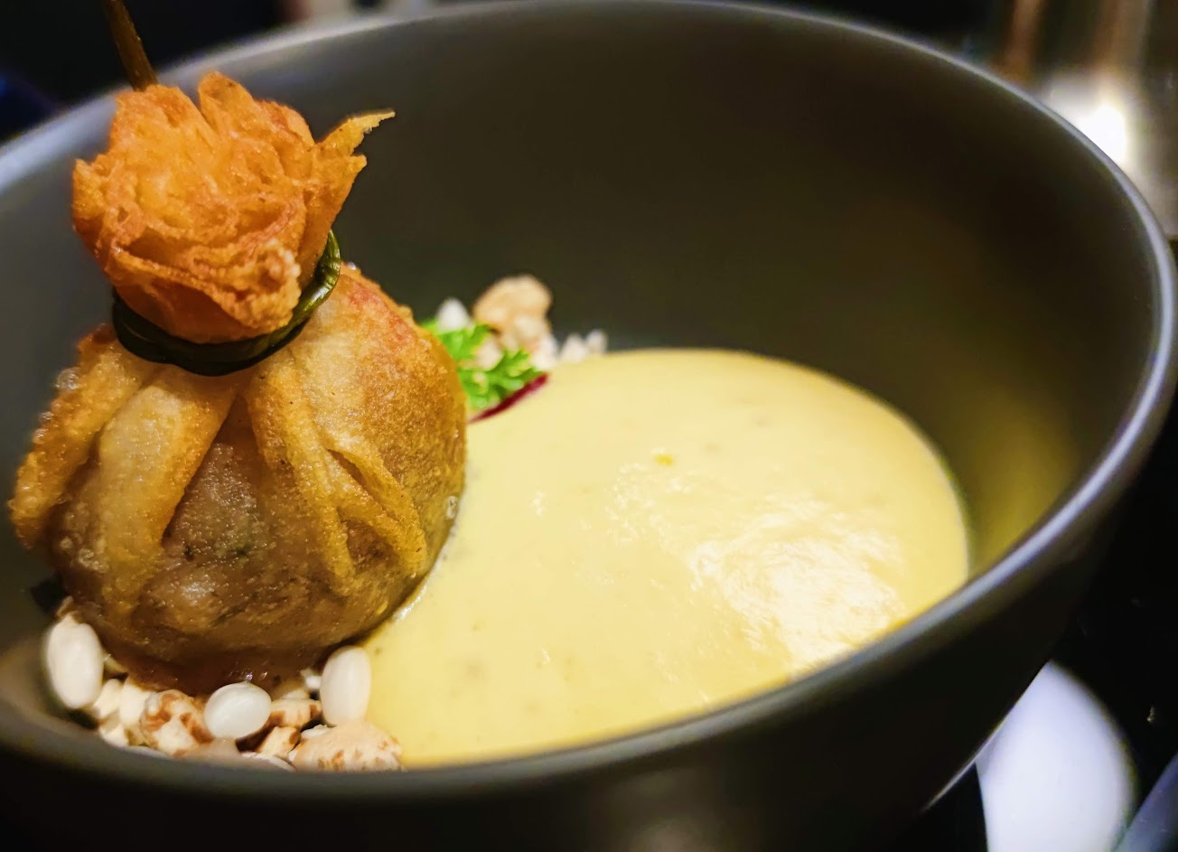 1.芋頭封鴨,原來是類似炸餃子雲吞, 一上桌就充滿意外,口感上沒有很濃的芋頭味,反而有松露醬汁的感覺,, 連不敢吃芋頭的人,都吃了一口試試。