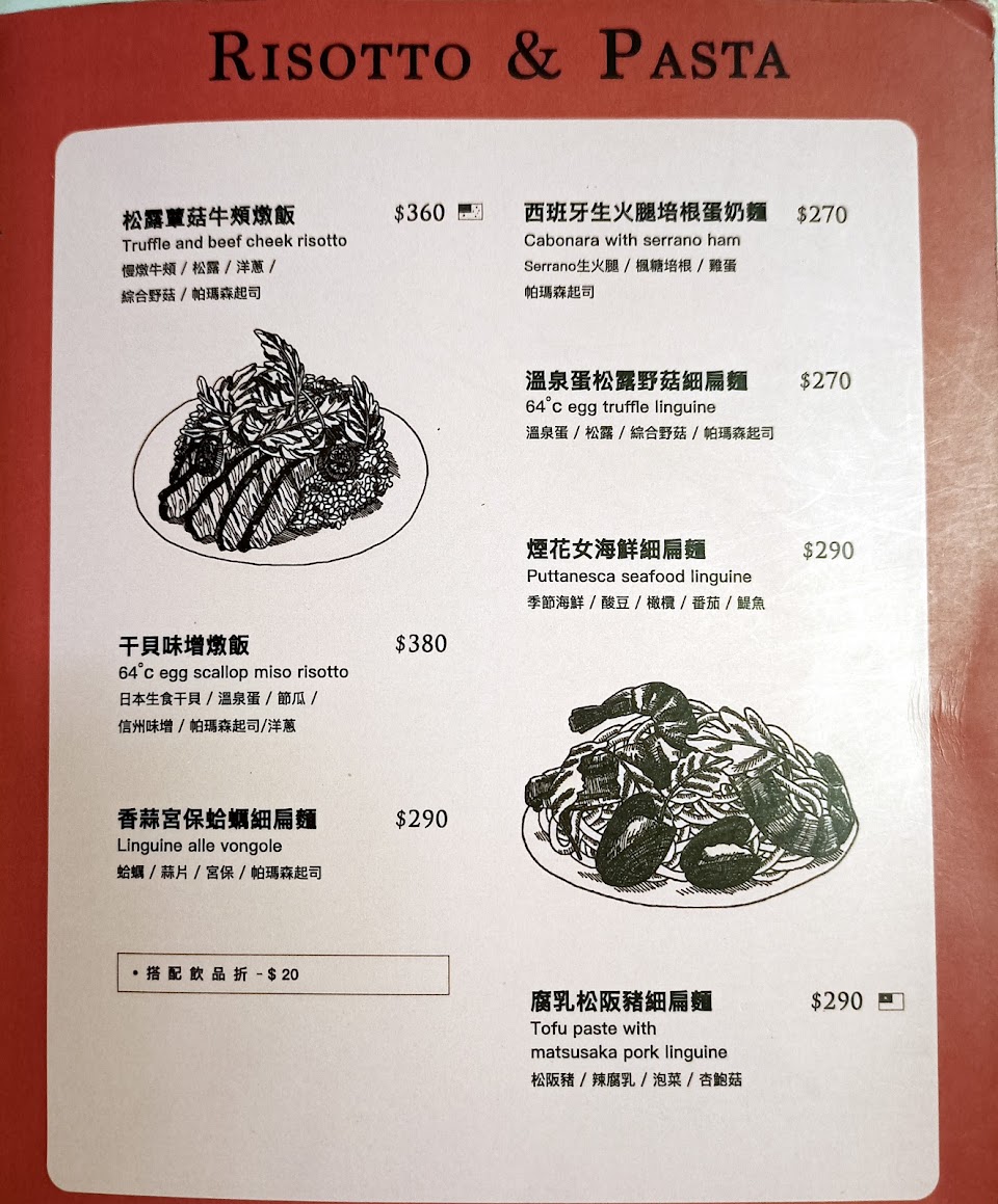 雖然一開始是漢堡有名,但意外地從義大利麵燉飯甜點甚至調酒都有的一家店!生火腿蛋奶麵非常好吃!一定要點~