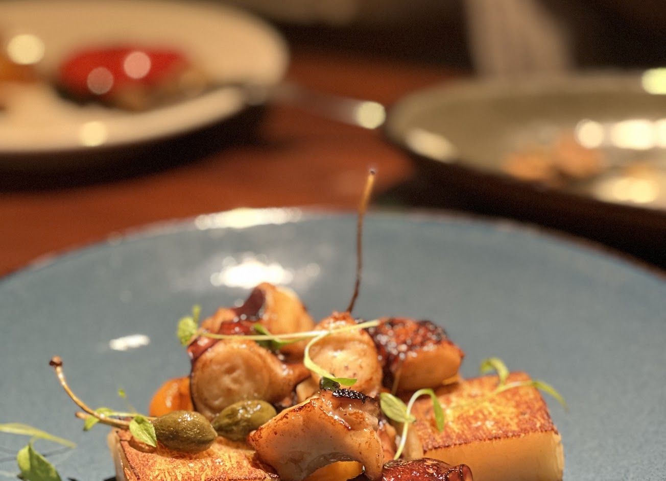 嫩煎章魚千層洋芋$520,千層洋芋做成像蘿蔔糕這樣還蠻有意思的,跟想像不太一樣,章魚真得很嫩。
