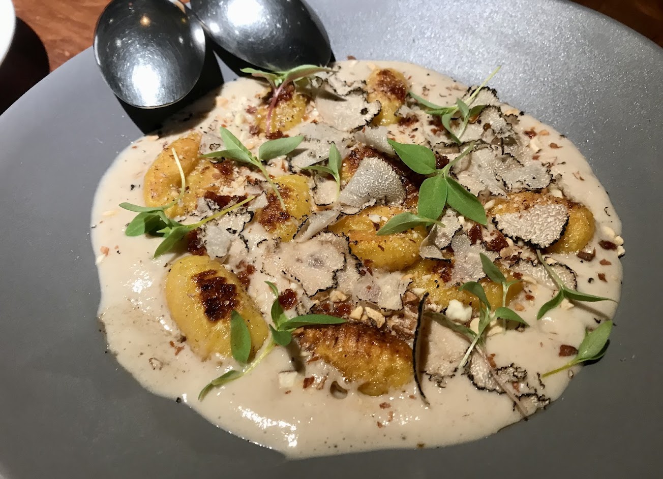 推薦菜色:藍紋乳酪與無花果搭生火腿、預定爐烤佛羅倫斯帶骨牛排?、西西里式鮮蝦搭特菲麵、松露小姐披薩、提拉米蘇。