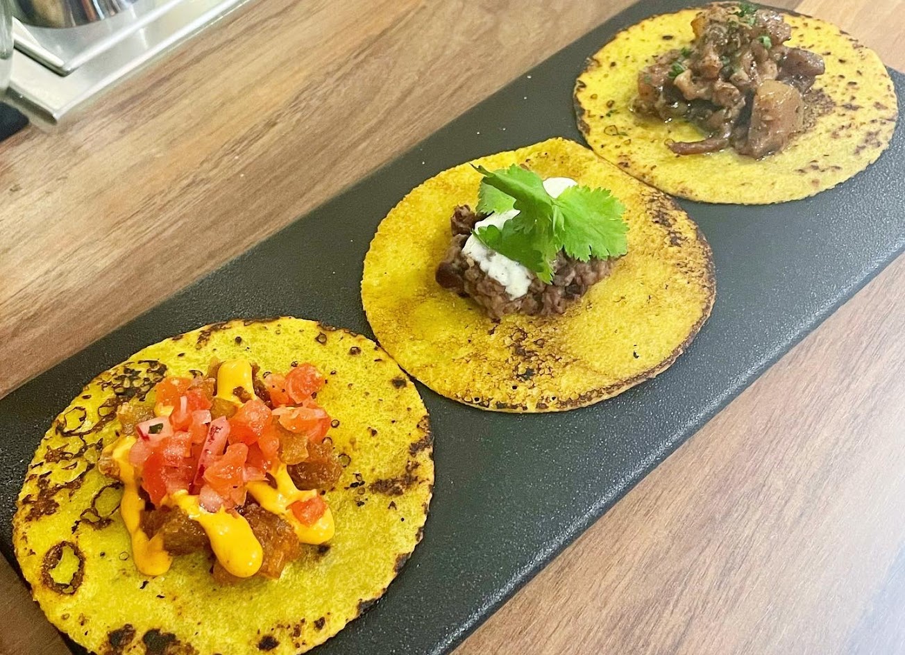 我非常喜歡這裡的美食。炸玉米餅非常美味,其他的大多是墨西哥/拉丁美洲和西班牙風格,如海鮮飯、巧克力油條、小吃和玉米餅。事實上,我喜歡甜瓜配火腿;如果你還沒吃過,就試試吧。還有很多飲料可以選擇。值得在這裡度過一個美好的夜晚。