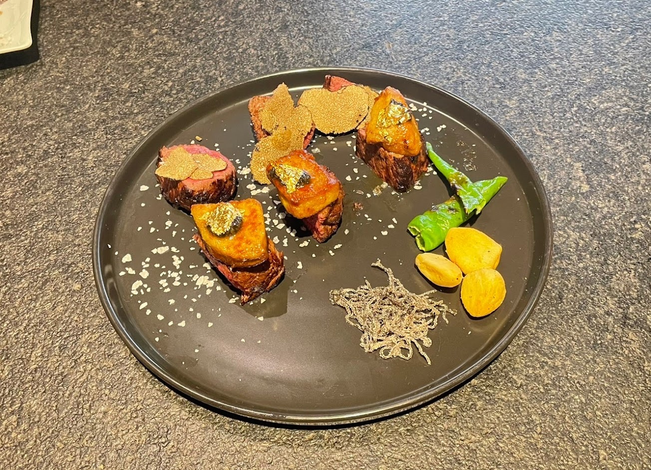 回到料理本身也是失望的,過於譁眾取寵,每一道菜都吃不出和牛的香味。同樣價位的別家真的大勝。