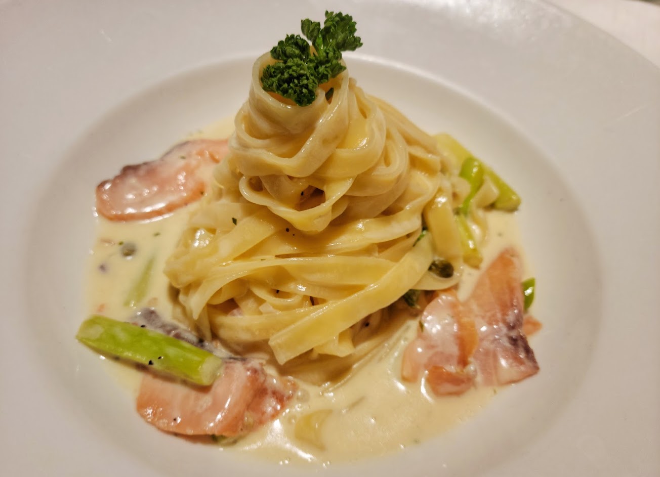 煙燻鮭魚蘆筍鳥巢寬麵 $ 420