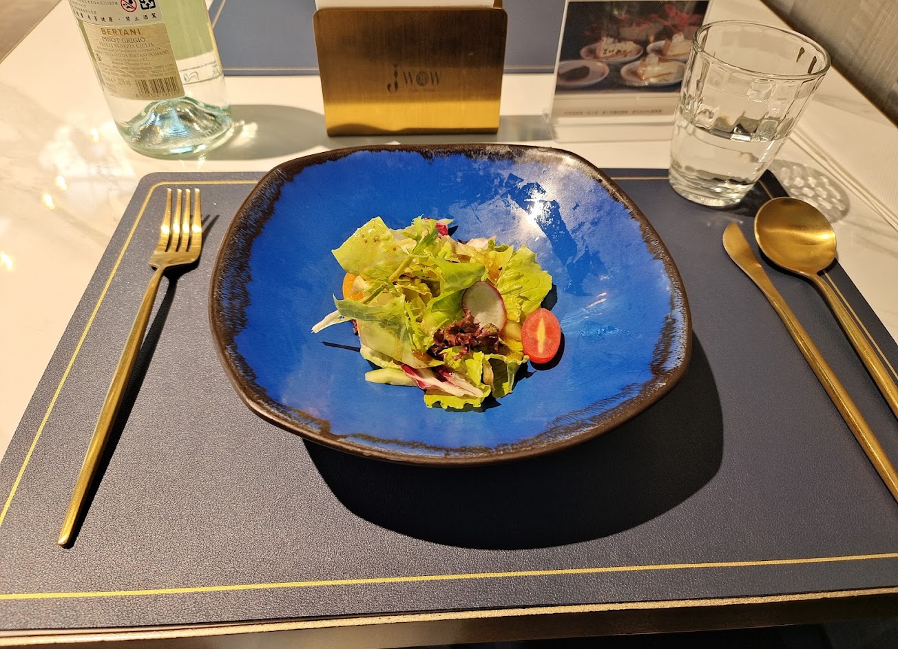 Jwow Cafe.Bistro /大安區餐酒館 深藍底鑲金字體的典雅招牌 室內挑高設計 櫃檯與吧台合一 呈ㄇ字型 以錯落的鋼條垂直鋪排至天花板 架設多個小型聚光燈打在吧台內 讓吧台有全新的時尚風格 桌面使用大理石紋面 懸掛藝術造型燈飾 簡約的高檔感從細節中流露 餐廳氛圍佳 服務人員熱心 是商業聚餐的絕佳場所 – ? 主廚最愛大雞腿飯 NT280$ 雞腿肉感厚實 醬汁入味 雞皮烤的酥脆 鹹度適中 下方放娃娃菜 保留蔬菜的口感分明 海帶和白蘿蔔 與肉搭配緩解油膩感 – ?高鐵強壯牛牛飯NT420$ 將牛肉橫切薄片 外觀目視約1.5cm 切面帶有兩層明顯的血色 食用完畢盤子略留血水 以香料調味 嚼勁中帶軟嫩 走精緻路線 算是商業午餐中的小奢華 – 白飯粒粒分明 且Q彈 撒上芝麻 越嚼越有香氣 因為不吃牛蒡都分給友人了 也是食材費的大宗吧 – 加一樣+NT50$ ✅收一成服務費 ✅商業午餐均附主廚例湯 且可選擇搭配飲品/沙拉/甜點加一種➕NT50$ – ?地址:106台北市大安區安和路二段213號 ?交通方式:搭乘公車至成功國宅站步行約4分鐘 ☎️電話:(02)2378-7777 ⏰營業時間:星期一至日08:00-24:00 – 用餐滿意度⭐️ ⭐️ ⭐️ ⭐️ 用餐環境⭐️ ⭐️ ⭐️ ⭐️ ⭐️