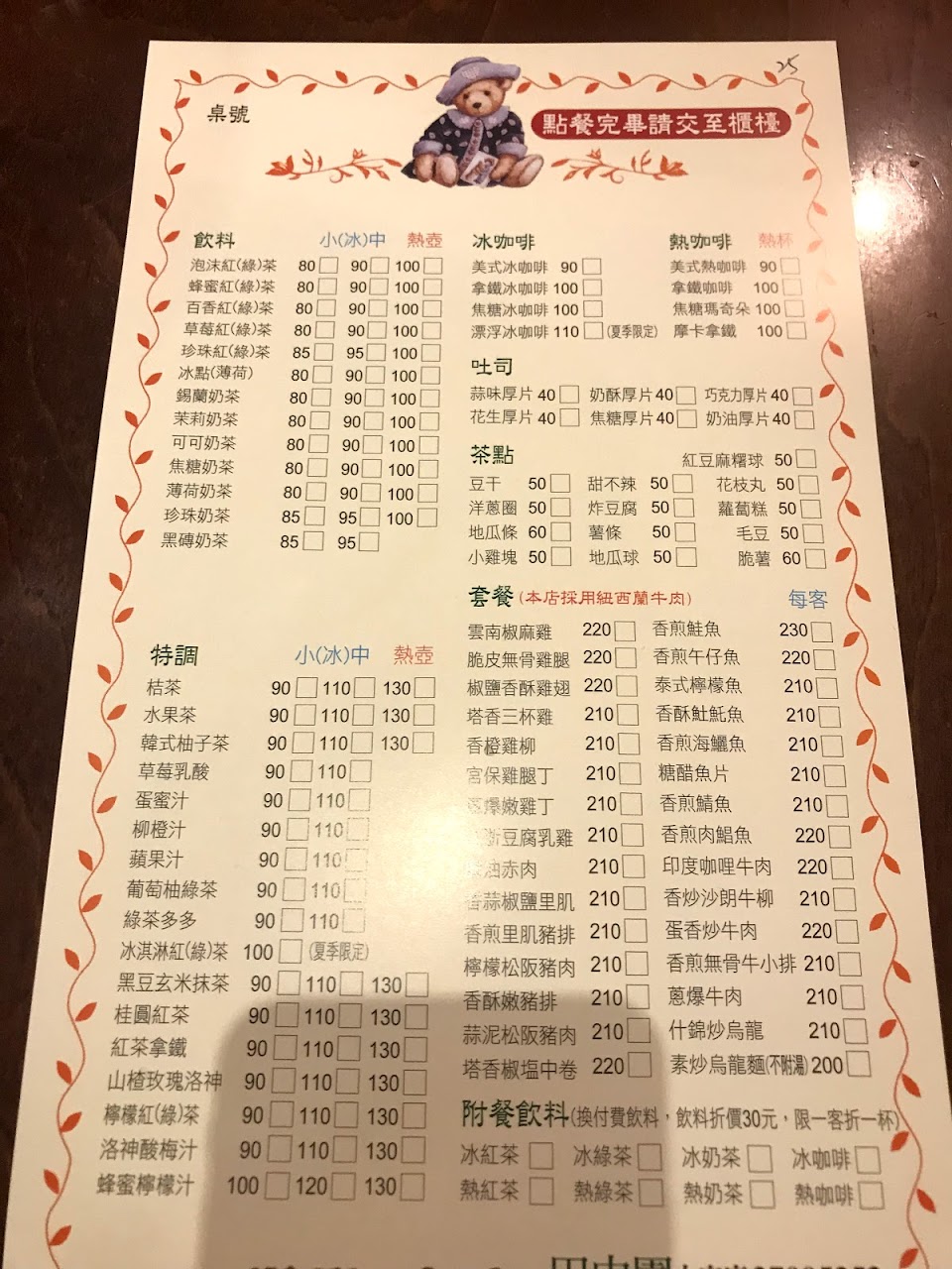 台北市現在少見的雜誌漫畫店,店內販售有中式料理套餐,也有飲料炸物點心,台北市內共有三間(環亞、大安、內湖),週六中午來到大安店,店內幾近客滿,裝潢為田園鄉村風格,書架上滿滿的漫畫跟雜誌,本來以為應該都是很舊的漫畫,沒想到竟然還有鬼滅之刃,我們一共點了三個套餐(香煎無骨牛小排、脆皮無骨雞腿、椒鹽香酥嫩雞),套餐的價位大多位在$250,套餐內容有湯品、三配菜一主餐、白飯、飲料(紅茶、綠茶、奶茶、咖啡),飲料亦可以折抵$30,補差價換其他飲料,奶茶是很久沒喝到的奶精奶茶,是一個打發時間的好地方!