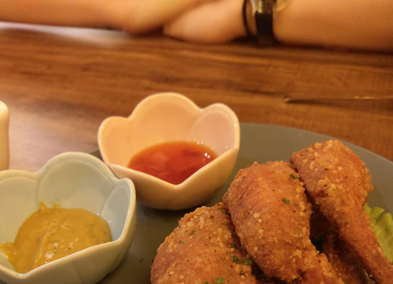 義大利麵分量很足,烤土司搭配剩下的紅醬一點都不浪費。烤雞翅口味酸辣相當入味,適合在優閒下午來這邊喝一杯!