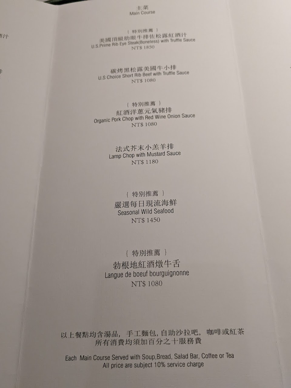 麵包偏硬無法接受的硬度感覺不是當日新鮮的。沙拉吧的菜很豐富也蠻好吃的。豬排過硬。沙朗牛好吃羊排有點騷味。