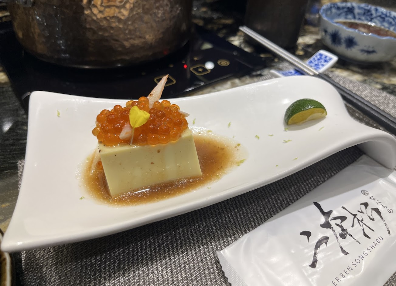 招待梅酒 和風蟹肉鮭魚卵豆腐 煮粥