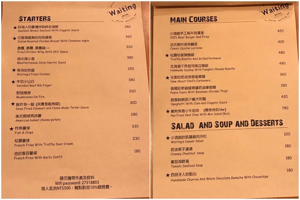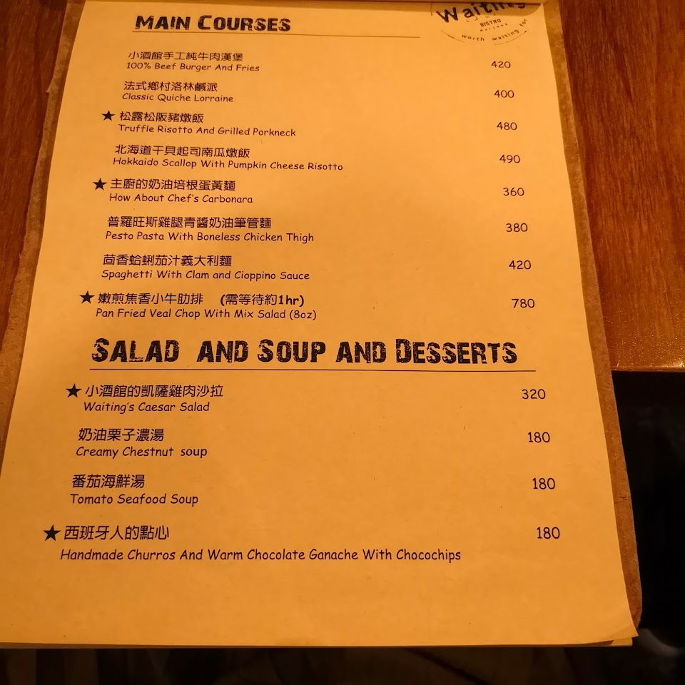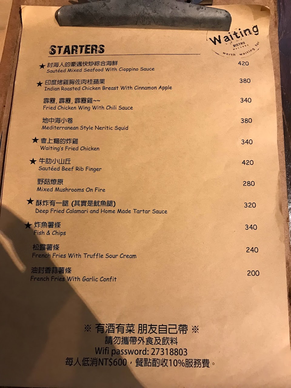 2024最新在地推薦餐廳的菜單_Waiting Bistro的菜單、圖片