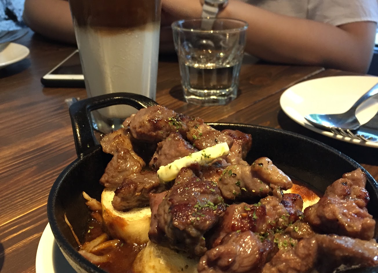 用餐環境乾淨,主食餐點的選擇不多但蠻好吃的,松坂豬燉飯不知道是不是某些食材有烤過,嚐得到多層次的香氣有點驚艷,西班牙人的點心–吉拿棒口感稍有咬勁的,附的巧克力醬裡藏有美味的巧克力碎片!),墨西哥熱浪牛蠻辣的,熱檸茶味道很特別,好喝,岩漿起司薯條是紅醬口味,還以為會是起司醬XD