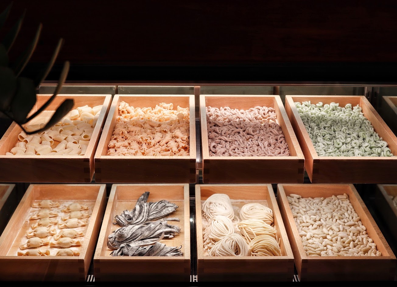 每一款義大利麵都有相對使用的手工新鮮麵體,不是一般的乾燥麵條,一盒一盒存放看起來玲琅滿目,視覺上蠻豐富也蠻療癒的。