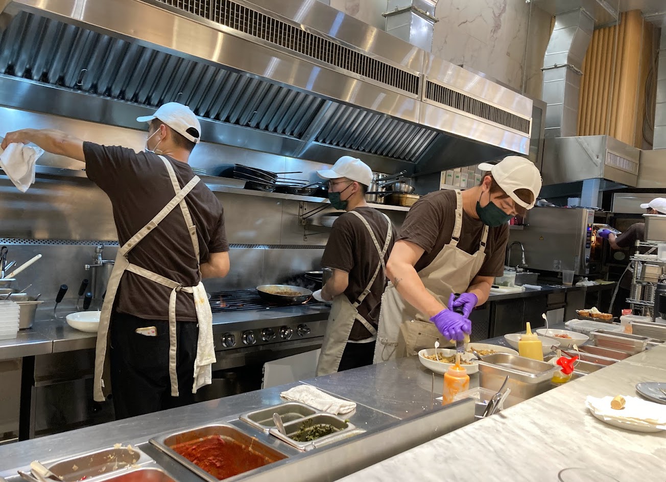 廚房採開放式的空間,顧客可以直接看到餐點的製作,但也因為這樣會看到廚師們有一些一般大眾所不能接受的動作,例如從圍裙上拿出小夾子夾取顧客餐點試味道再把夾子插回去的行為。