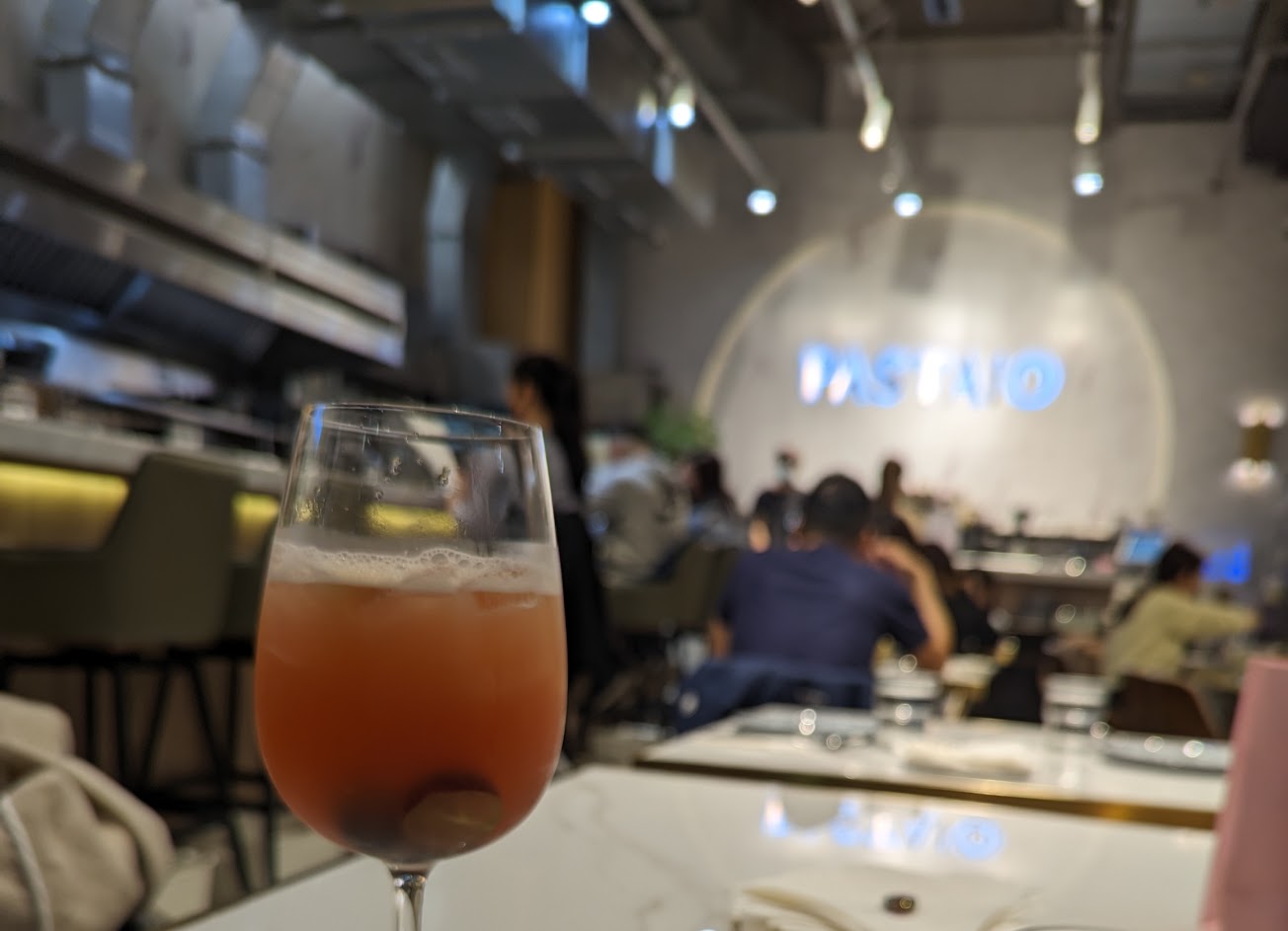 最後是調酒的部分,我忘記我點什麼調酒了,但記得基酒是伏特加,應該還加了蛋白吧?九感比我想像中重,搭配肉醬麵一起雖然清爽,但是感覺不是最完美的搭配,如果跟朋友聚餐,點這杯搭配炸物小聊感覺會是很不錯的體驗。