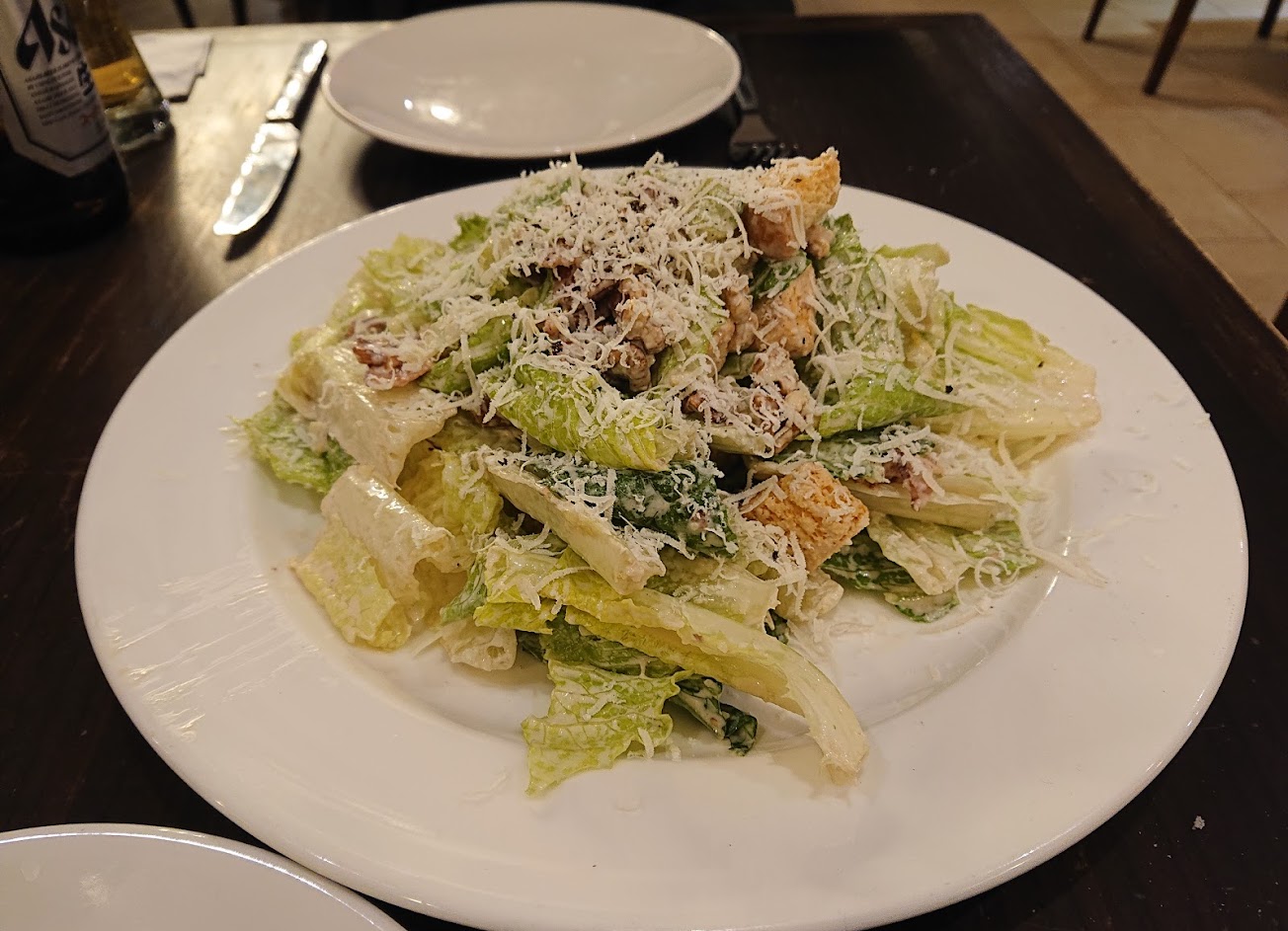 從凱撒沙拉前菜,開胃菜雞翅,到主餐肋眼牛排都水準以上!