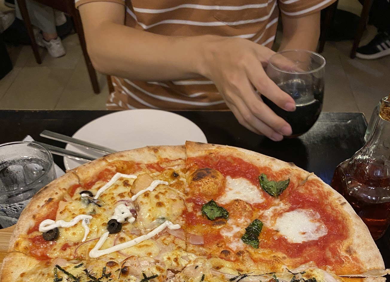 個人很喜歡墨魚香腸佛卡夏,調味非常好,小小一份但只要沾一些料在佛卡夏上香味四溢;辣雞翅也很推薦,皮酥但不是像炸過的脆,不膩口,肉質也是嫩又多汁卻不軟爛,微甜辣調味剛好。披薩如網友所說皮是屬於薄軟的,不是平常會吃到的口感,但意外的很好吃,調料也很搭。義大利麵三款都是經典,麵體個人覺得雖然較一般店家硬,但並沒有像義大利在地的硬芯口感,當然我們完全沒有要求調整,所有人也沒有覺得需要再更軟一些,最後搭配的甜點披薩,搭配多球香草冰淇淋,吃起來剛好可以做完美的ending。