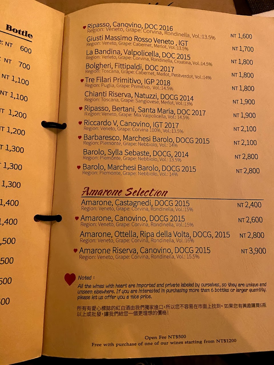 氣氛不錯的義式餐廳,建議可以點一些紅酒來喝,這邊酒類選擇很多!