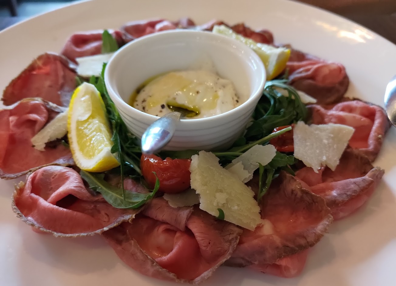 烤牛肉擠上檸檬搭配醬料,酸而不刺、香而不膩 麵餃一口咬下,爆出滿滿乳酪,滿足感十足 烤羊排外酥裡嫩,熟度非常剛好,沒有羊騷味,簡單薄鹽就可以吃到最原始的美味