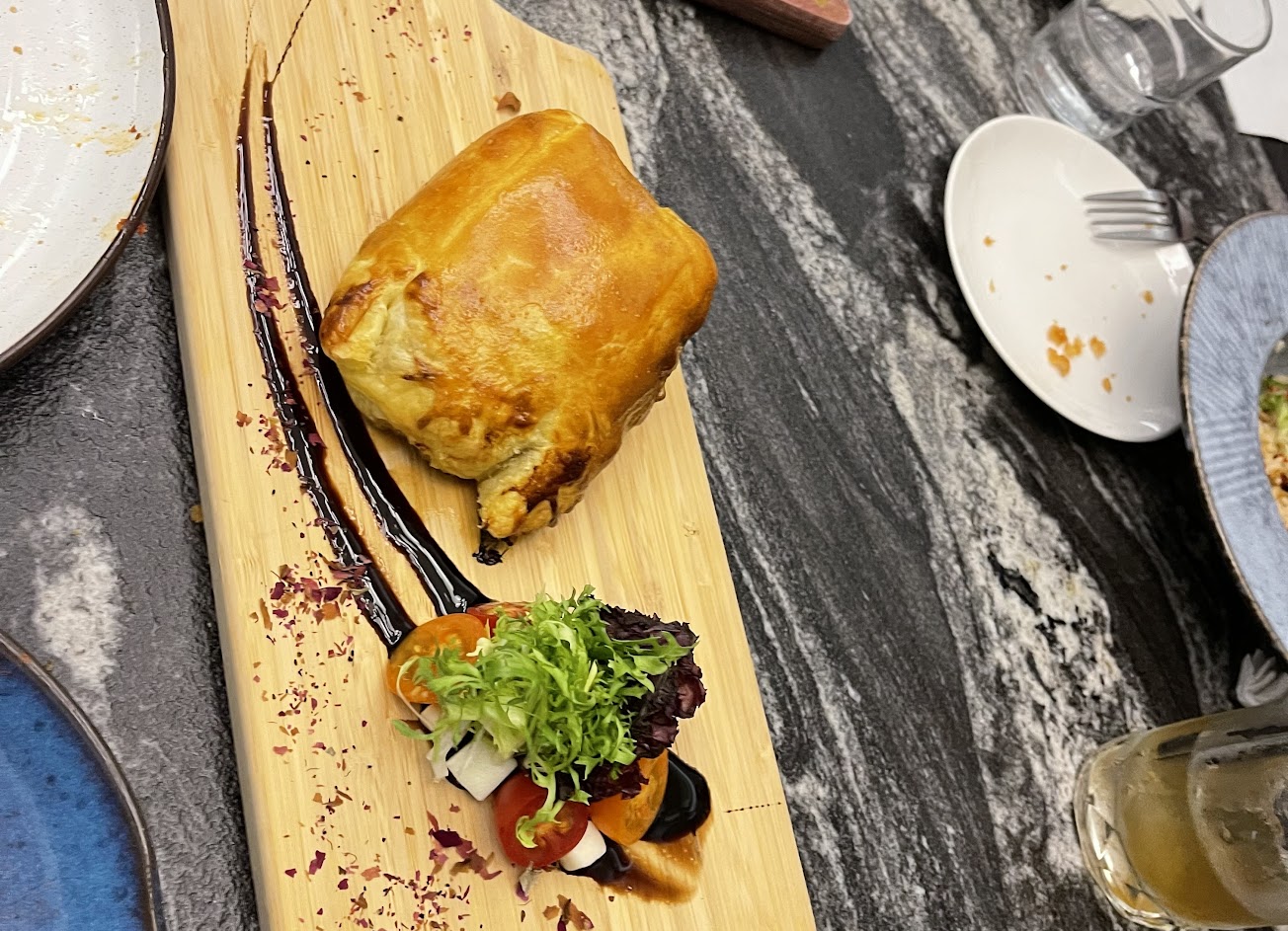 類似威靈頓牛排的外觀,烘烤的酥皮內有整塊鴨胸