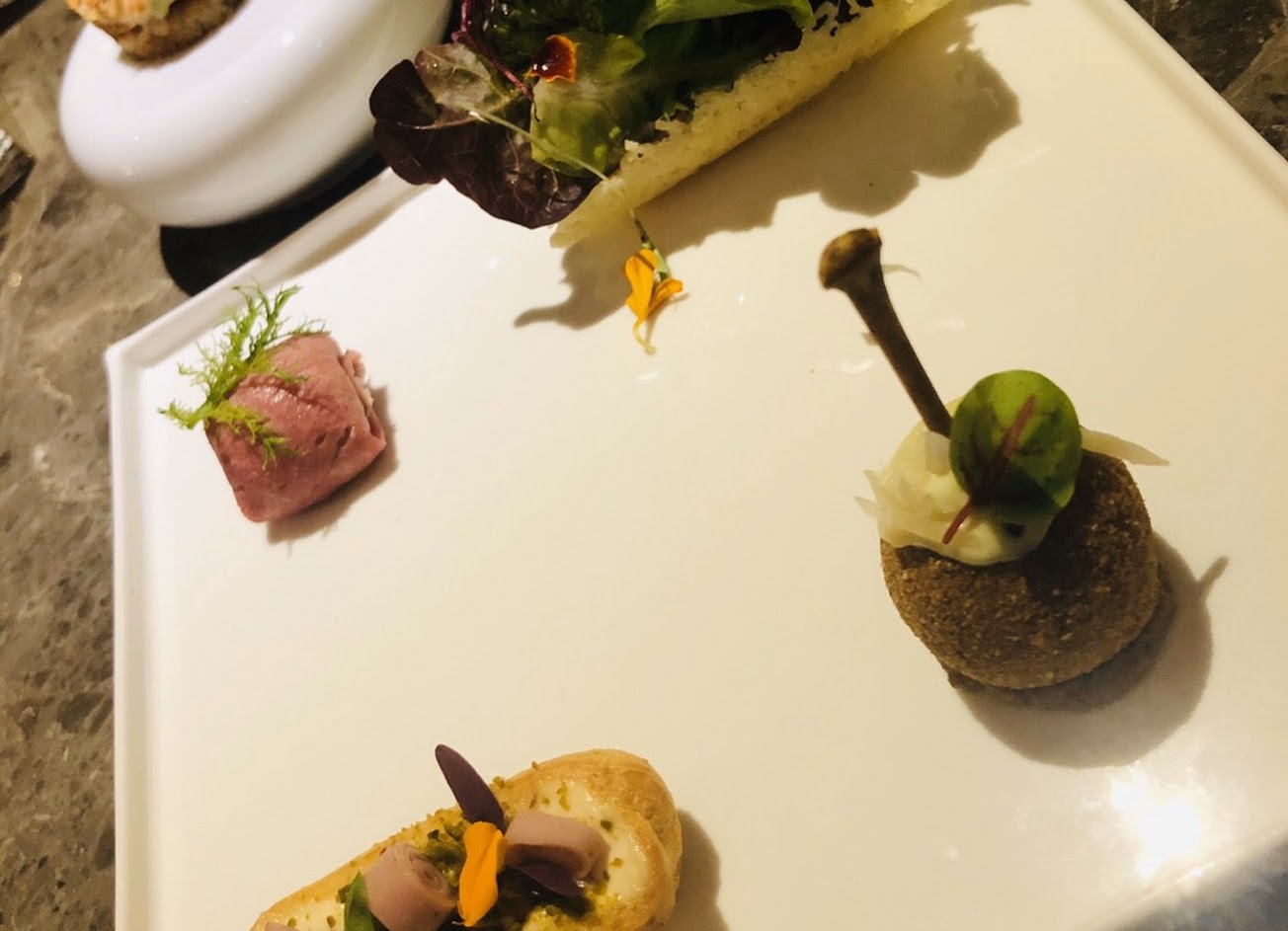 前菜的五種小樣相當用心,每一顆都很好吃。牛肉湯餃子或海鮮麵疙瘩也相當不錯,主菜雞肉與油醋香料的搭配很喜歡。甜點稍微弱了一點,外型很好看。基本上很有米其林星級的潛力,比起之前吃的別家義式米其林客座,表現的更好,價格也很有競爭力。