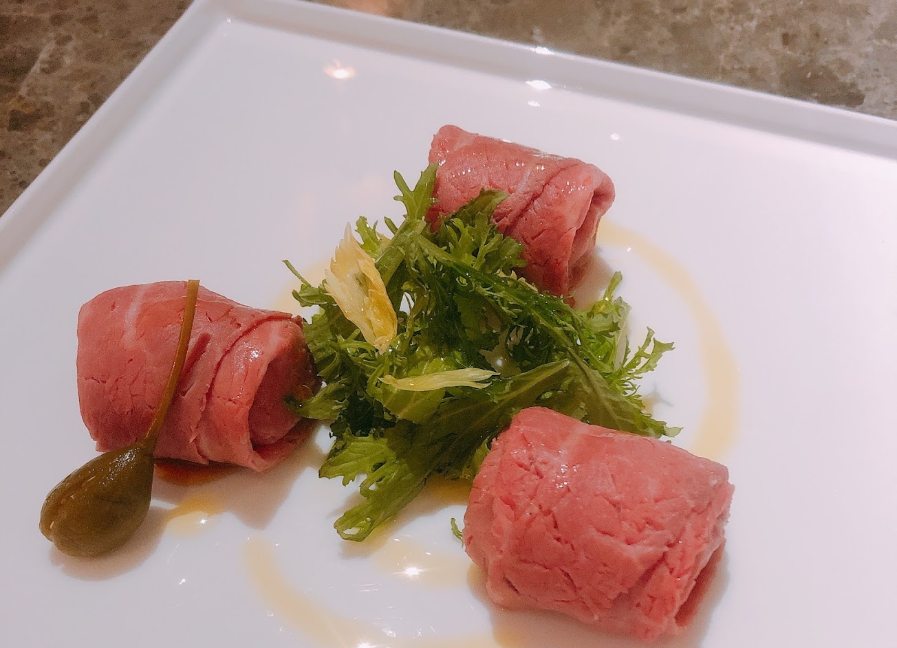 生牛肉包裹著鮪魚泥讓人要下去有種小爆發的驚喜感!
