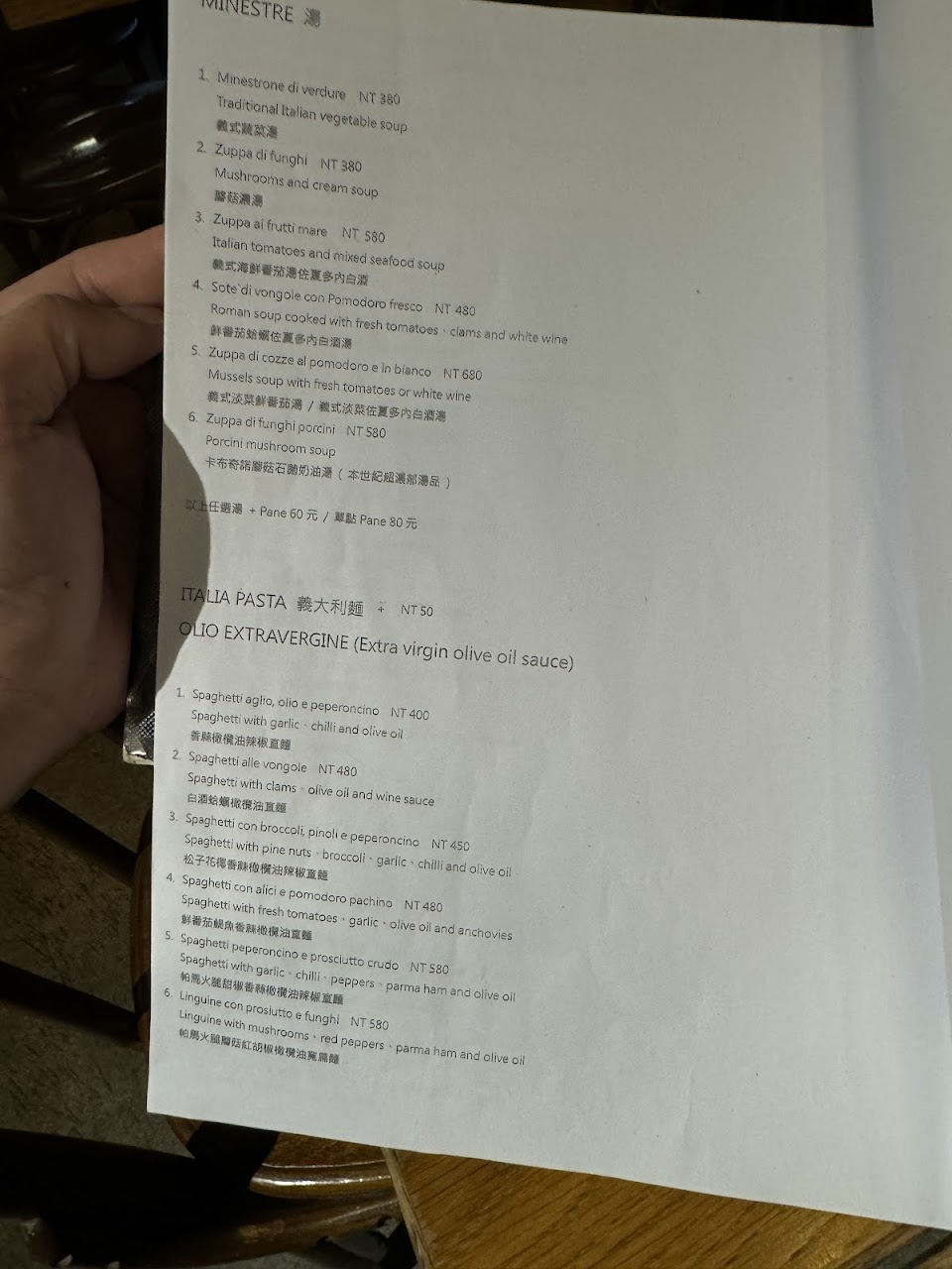 價格:提拉米蘇680,蘇打水280?每道菜加收30元?!披薩加50nt?菜單體驗很糟糕,很難正確閱讀價格,對於非高級餐廳來說絕對價格過高。後來我看到其他評論說提拉米蘇要收顧客800?!榮譽和透明度在哪裡?這個地方應該關閉