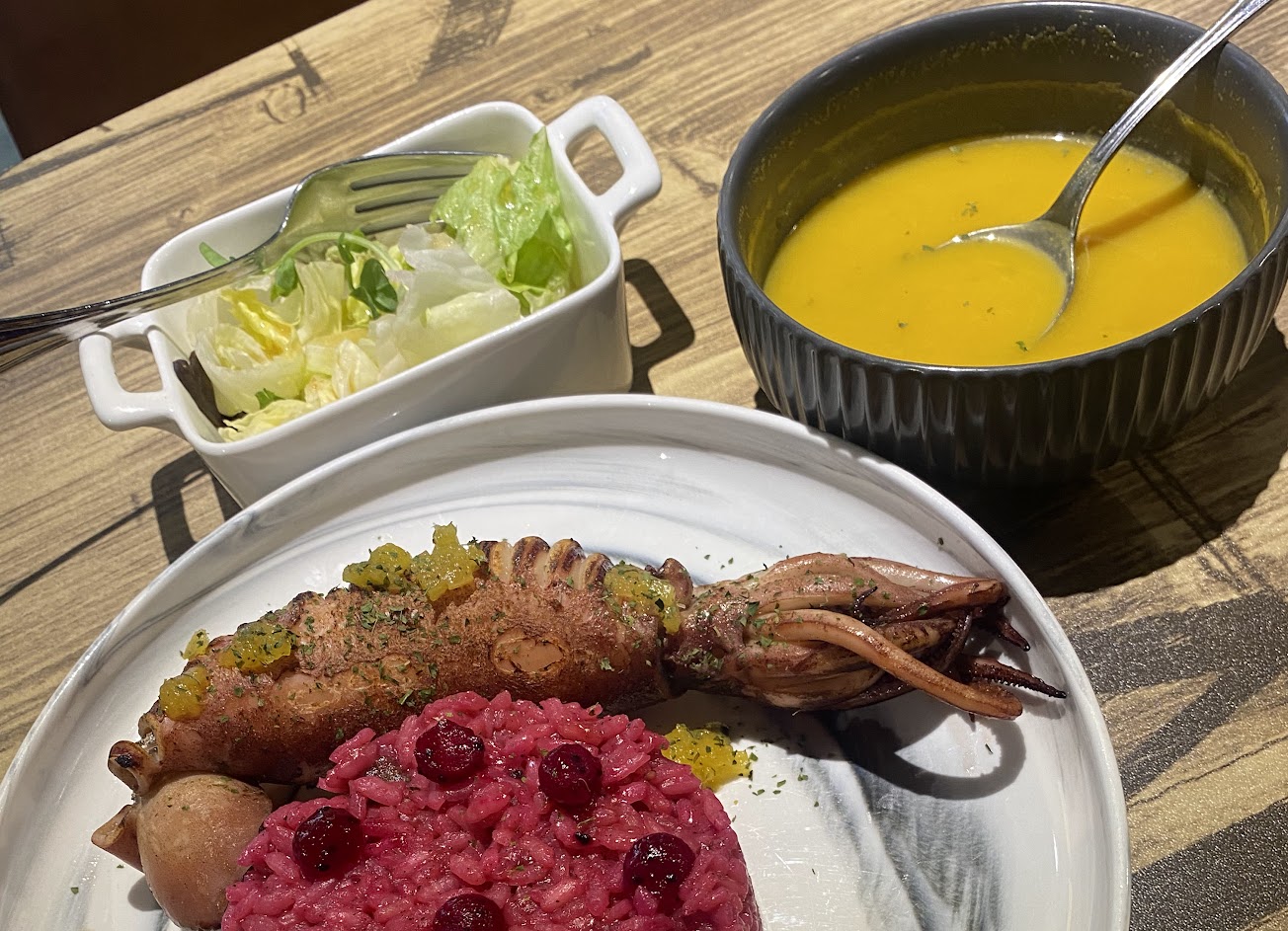 真材實料, 墨魚麵,墨魚煎烤的很香 火龍果麵,超可愛的,單純一點點甜,搭配的很剛好 濃湯有香草味口味很香 餐點:5 服務:5 氣氛:5