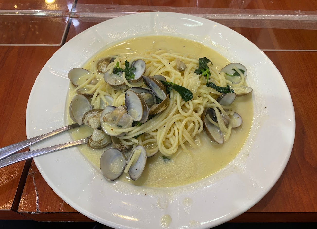 辣味雞肉麵跟白酒蛤蜊麵還不錯,如果不想要太多湯汁可以告知要收乾一點,平價且份量算多