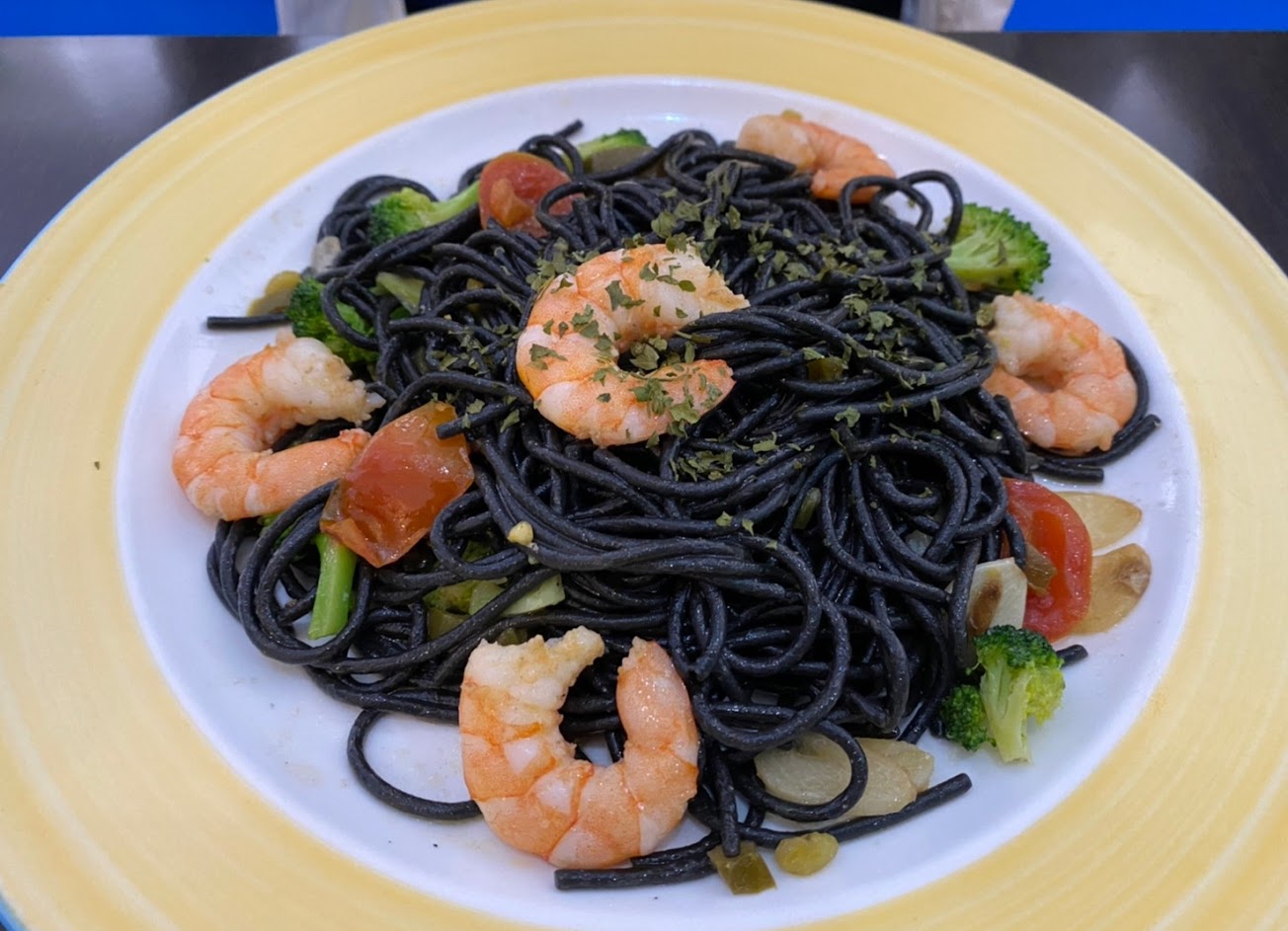 墨魚蛤蜊麵(加大)+墨魚鮮蝦麵(加大)= $690