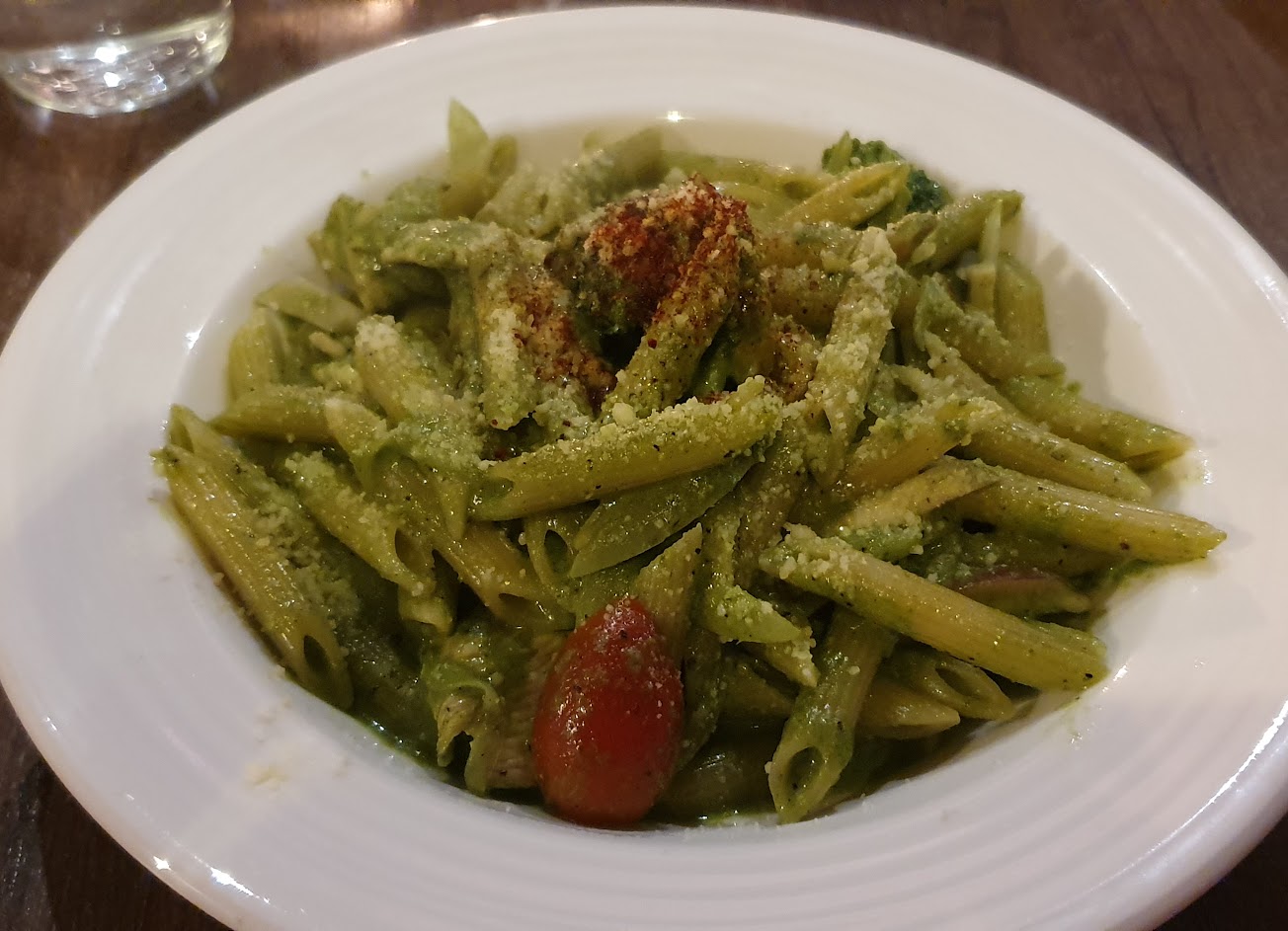 青醬雞肉義大利麵好吃、續杯的紅茶好喝