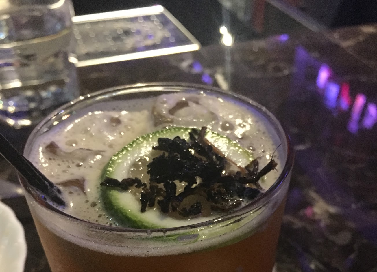 店內採無酒單方式,調酒依個人口味做調配,我點了威士忌基底的調酒,偏酸微甜,喝起來還可以,沒有到經驗的程度。當日有一人送一杯檸檬口味的shot,蠻好喝的。