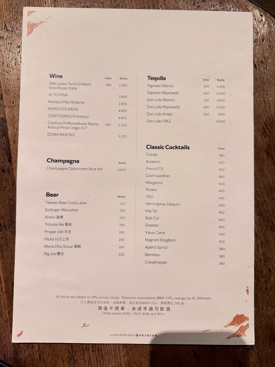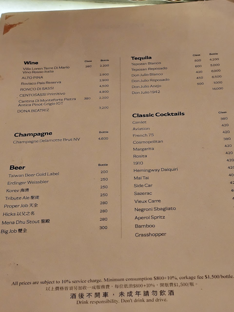 聽說有低消但實際來了以後店員沒有特別提醒,感覺不錯!點酒了以後,bartender會特別提醒一些口味還有酒感,覺得貼心