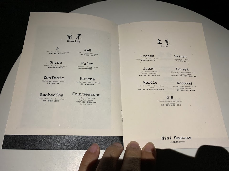透過聲光的改變營造氛圍感,五杯調酒+小食1500左右以台北來說是物超所值,只是位子較少需要定位,而且每季都會更換套餐式酒單,可能要挑選一下自己喜歡的風格。