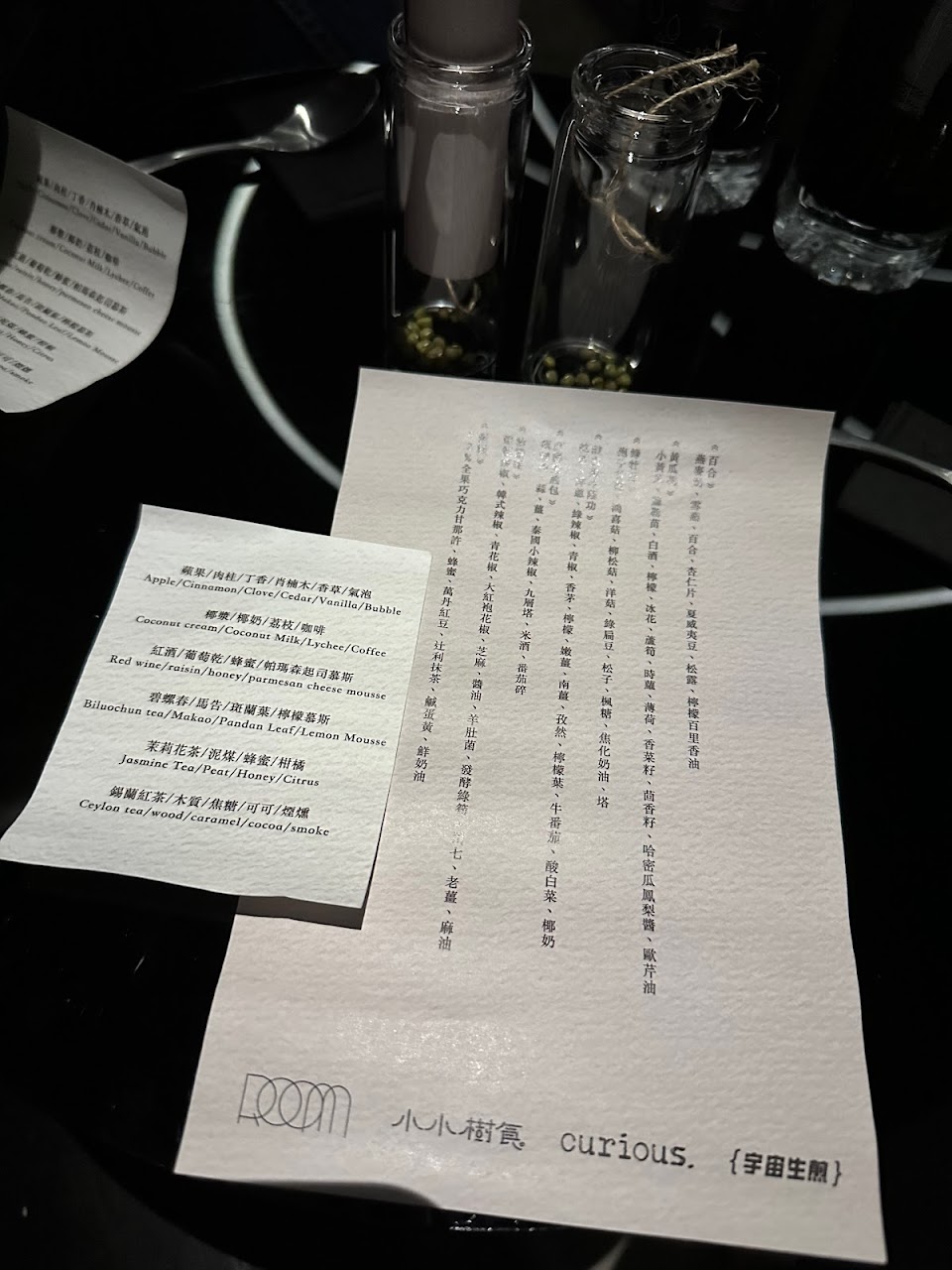 說的比做的好聽,氣氛跟音樂的鋪陳不到位,花太多時間陳述卻沒達到相對應的體驗,,座位太小桌子也不能移動,用餐下來有點克難,剛好遇到跟罐頭食品的合作,所以這次大多餐點都是罐頭食品⋯不要知道比較好