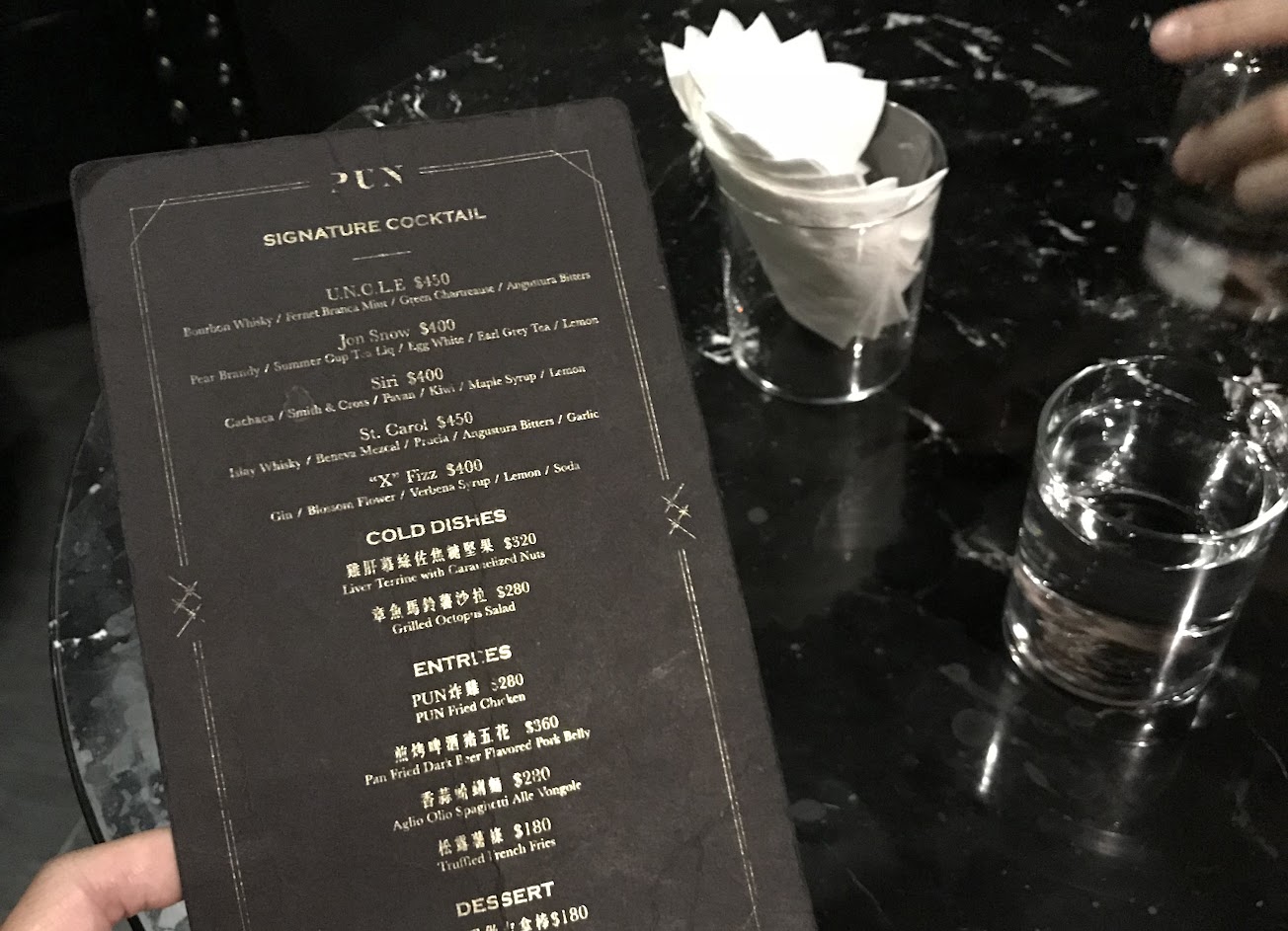 綿密的蛋白上頭刨上了一層安息香再放上茶葉作為點綴 讓下方的酒體即使在夜裡喝起來也顯得溫潤 Jon snow 立刻成為我們當晚的心頭好