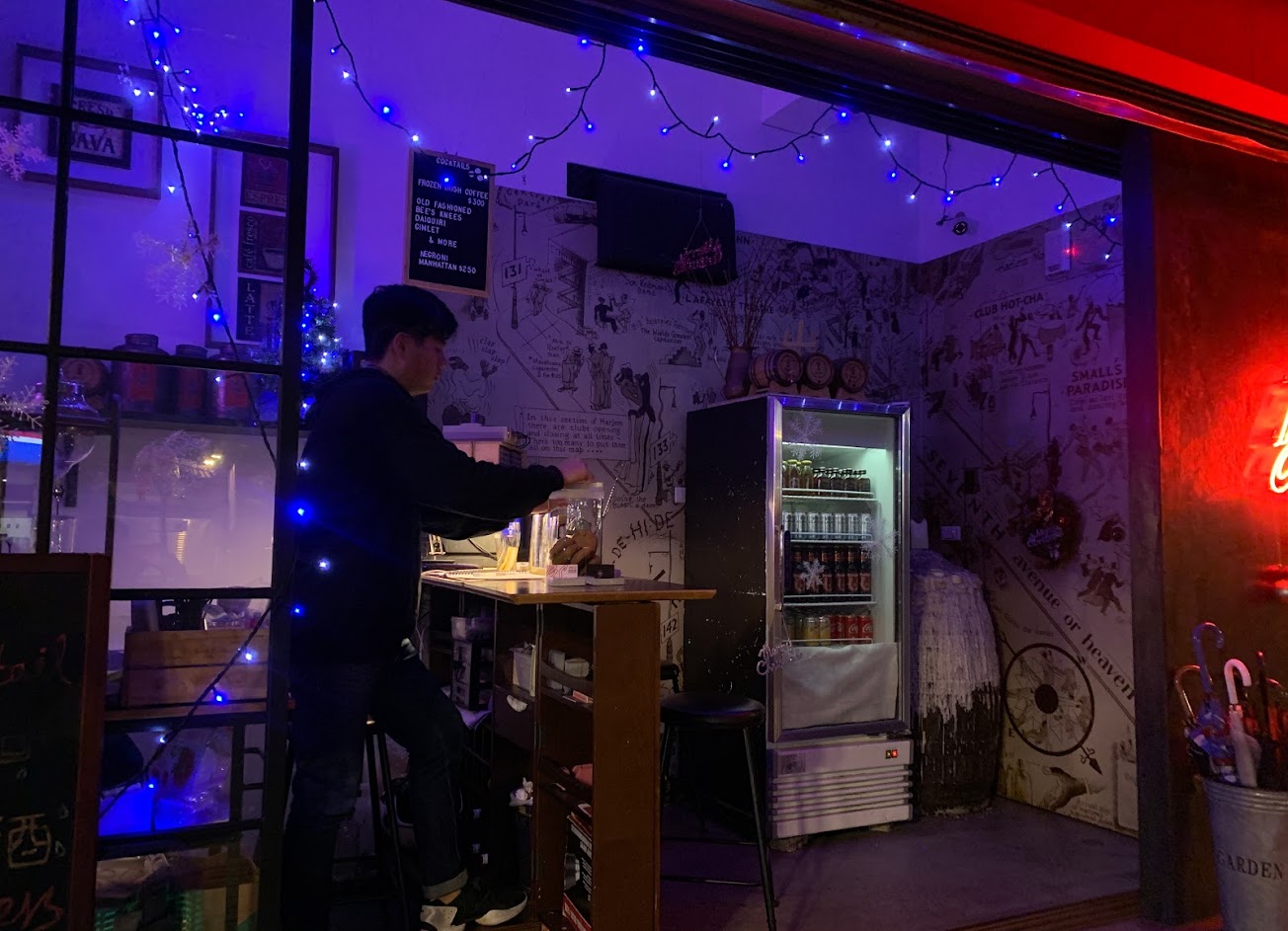 裡頭偏暗,座位不多的小型酒吧