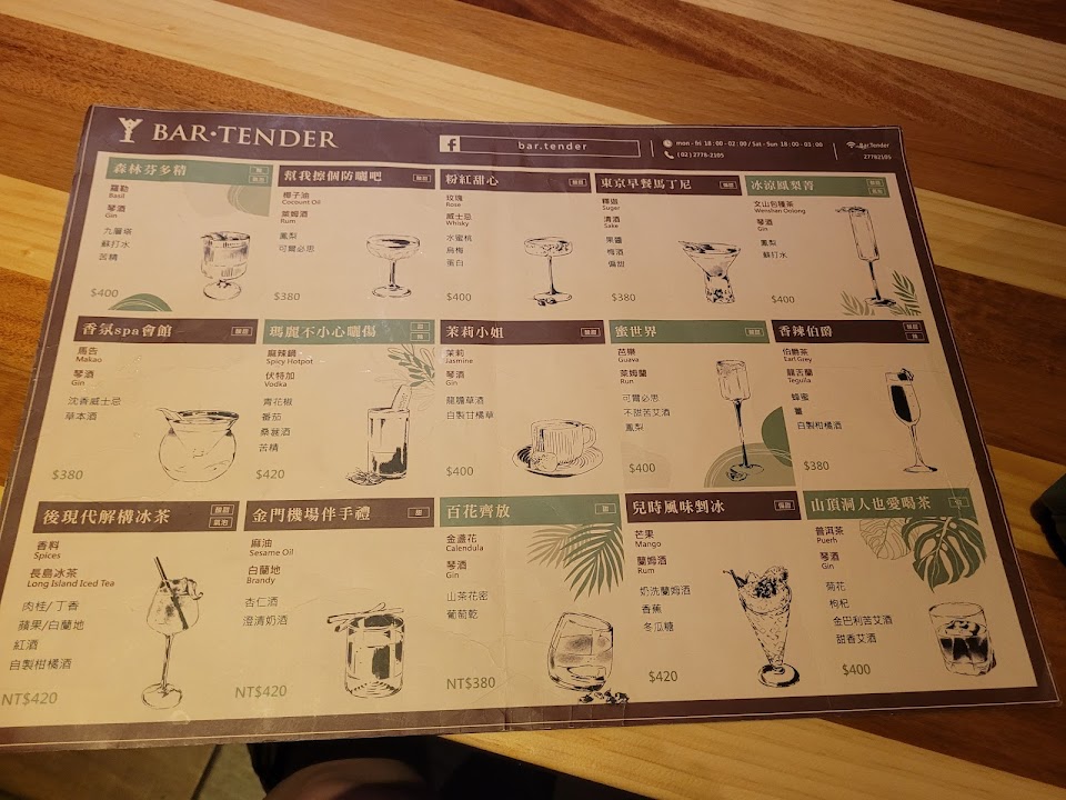 2024最新在地推薦餐廳的菜單_Bar. Tender 八天的菜單、圖片