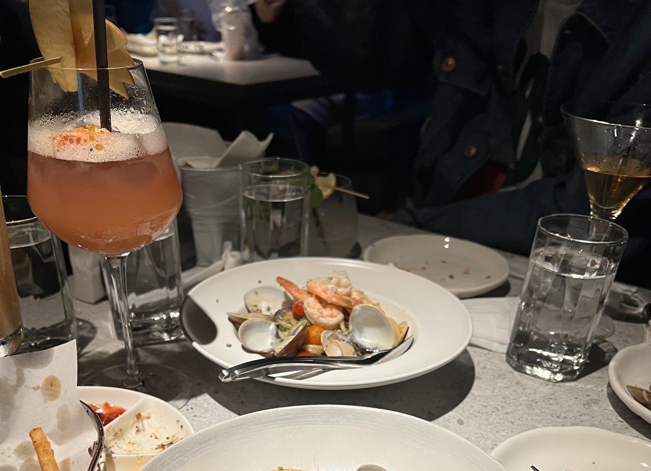 服務十分親切,服務生們都是型男帥哥 海鮮義大利麵、龍蝦海鮮燉飯、起士蒸蛋、蛤蠣、炒花椰菜?,每道都很好吃? 酒也會按照你的口味進行調整,不喜歡直接換一杯 用餐氣氛非常好☺️絕對會回訪的? …