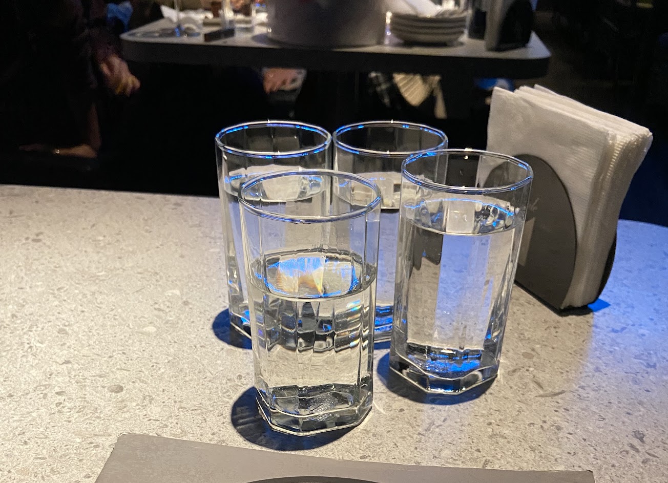 五人給四人桌非常擁擠,海鮮非常不新鮮,海鮮沙拉的生魚片很不新鮮!