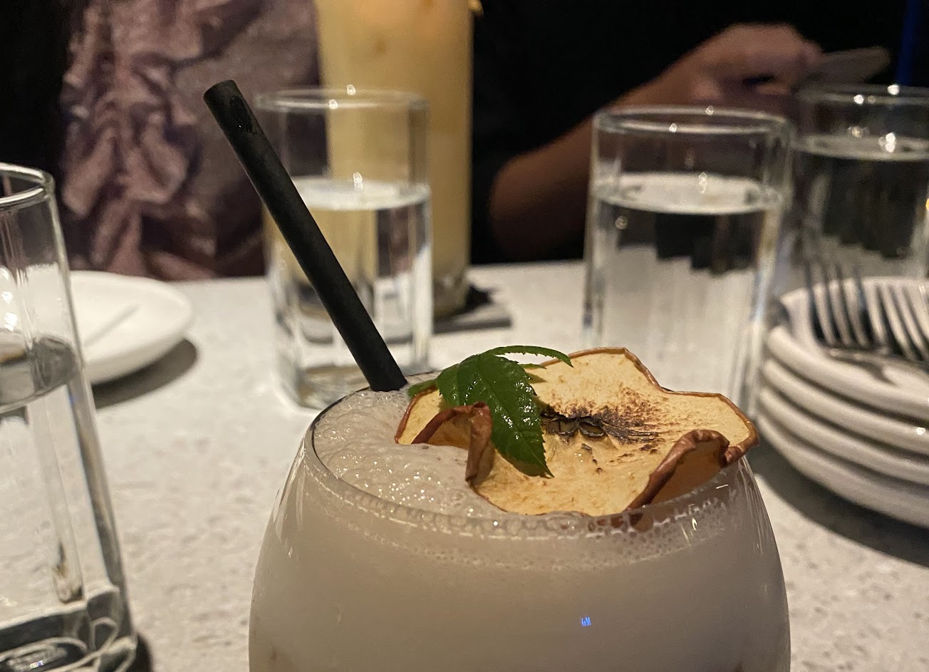 印象最深的是喝朋友點的 Everything 調酒,有附一端燒焦的肉桂吸管,配酒喝,有種抽菸的感覺,對平常沒抽菸的我來說 感覺酷斃了。還有另個朋友點了忘記啥調酒,上面有配鳳梨,還有一層焦糖,他表示好吃,怎麼可以這麼酷。