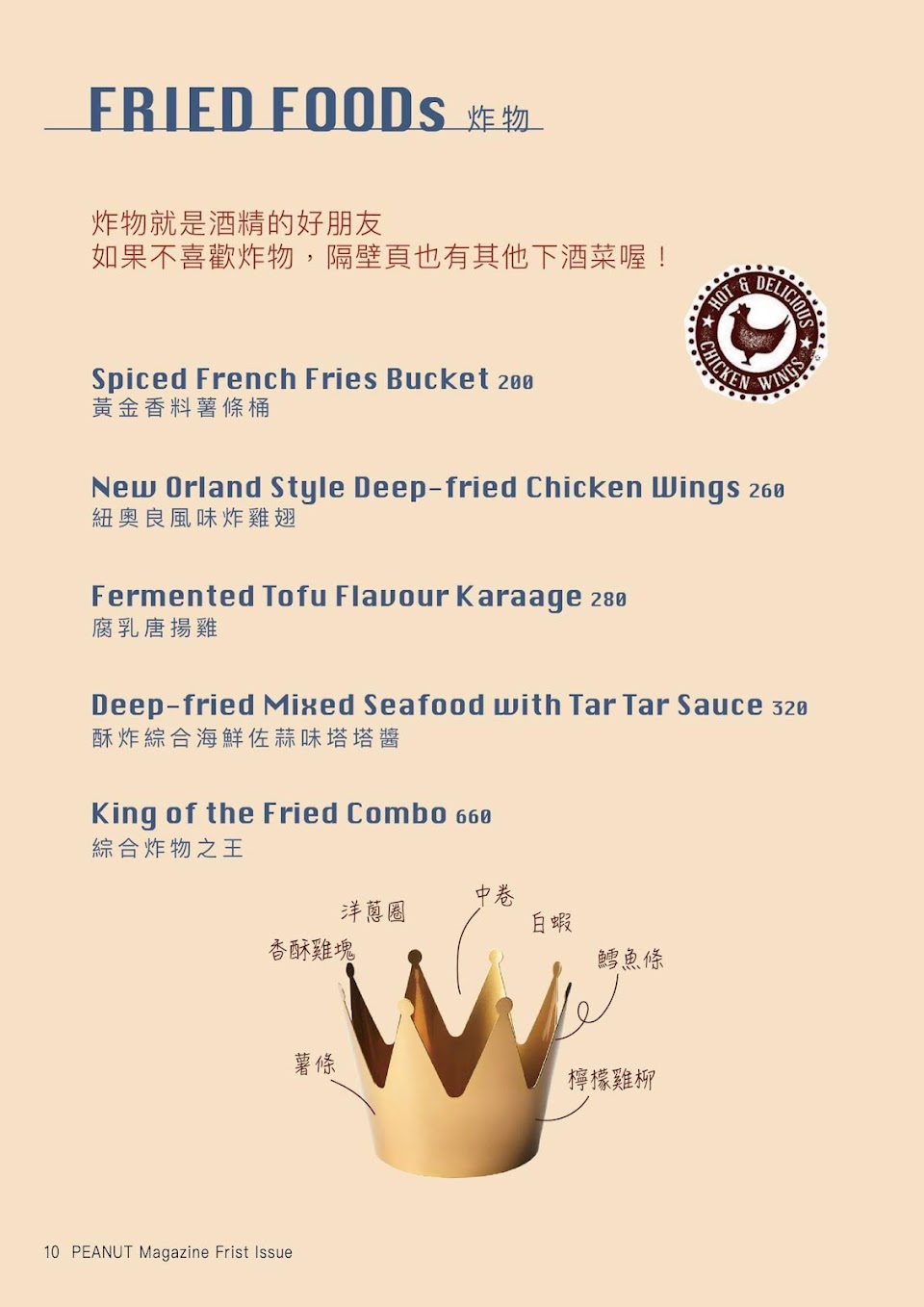 酒單滿豐富的,主食餐點數量偏少,適合去喝酒配炸物聊天?的地方