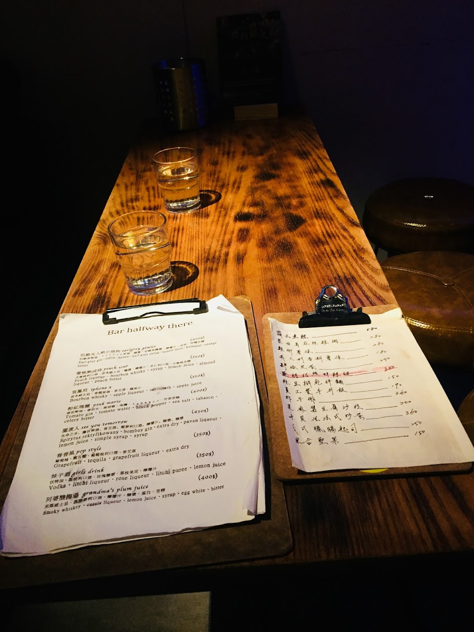 這是一家沒有菜單的酒吧,提供美味的飯菜。我們點了辣椒蒜貽貝意大利面、粉紅香蒜醬牛排意大利面、泡椒皮蛋豆腐和四種不同類型的雞尾酒。食物很棒,份量很大,雞尾酒也令人回味!!