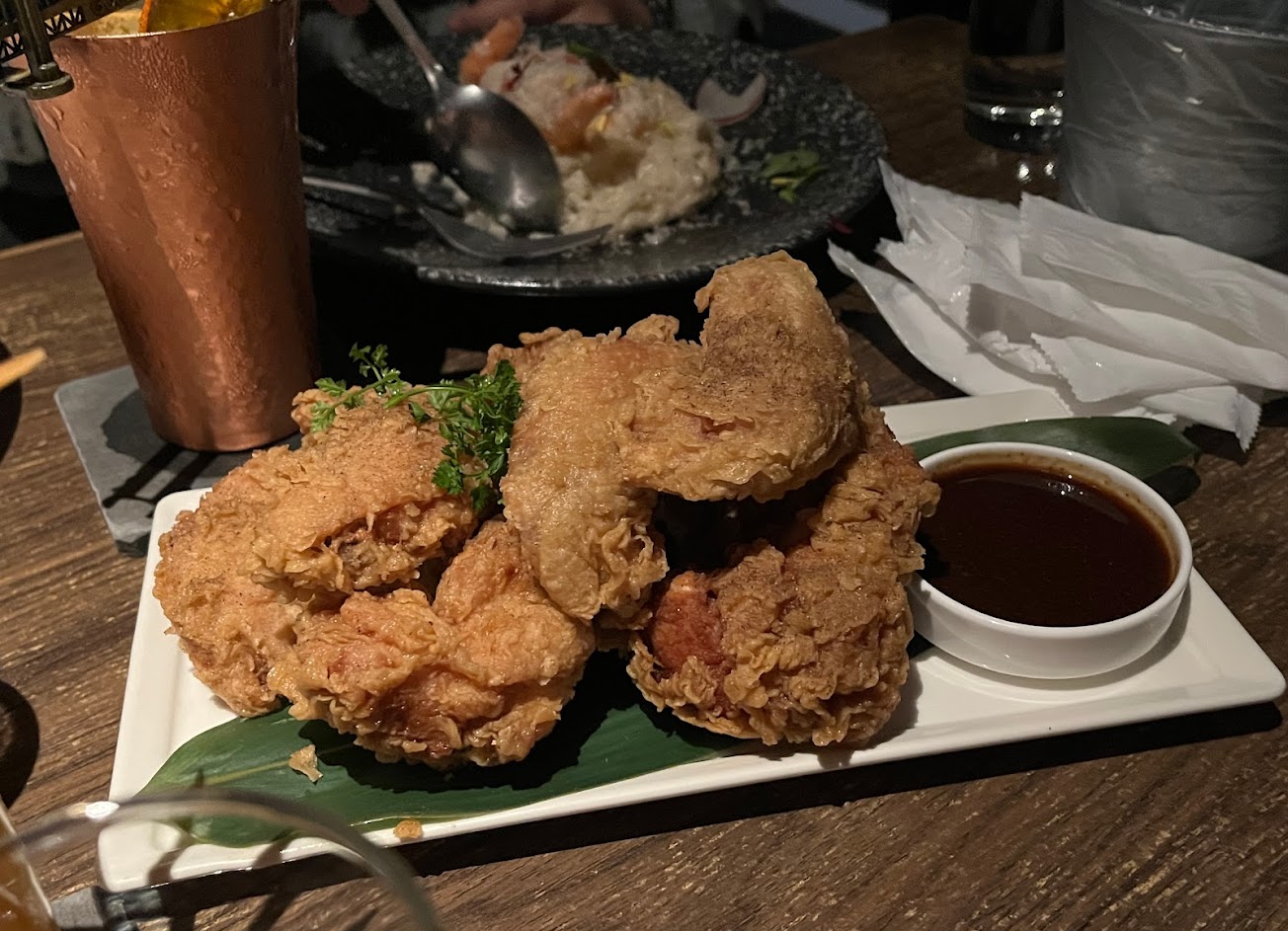 週六晚上生意超級好的,沒訂位肯定是沒位子。比較晚訂位所以只剩吧台的位子,但用餐體驗還是很不錯~餐點表現都很優秀而且份量意外的大,調酒選擇很多而且酒單是用畫的超可愛! 起司豆腐:軟嫩的雞蛋豆腐淋上滿滿的起司醬和培根碎,不會錯的組合。 炸花枝圈:今日最愛,超級大一盤!花枝很新鮮,外皮炸的非常酥脆,不用沾塔塔醬就很美味。 金沙炸雞翅:外酥內嫩又多汁,外頭裹上鹹蛋黃,總共十塊兩個人分會有點膩,但有醃蘿蔔可以搭配。 油封鴨胸義大利麵:鴨腿肉超嫩很好切,份量也很有誠意。義大利麵是清炒的,菇類和九層塔吃起來很清爽。 調酒點了Trinity, Destination, Sunday morning,都是和水果的搭配,酒感重但又不減清爽,還不錯。 提拉米蘇:另一個今日最愛,旁邊擺了烤棉花糖,提拉米蘇有一層是類似冰淇淋的口感,最下面的餅乾底帶有鹹蛋黃的香氣,有畫龍點睛之妙,吃完很滿足。 服務 內用 餐點類型 晚餐 平均每人消費金額 $600-800 餐點:5 服務:5 氣氛:5