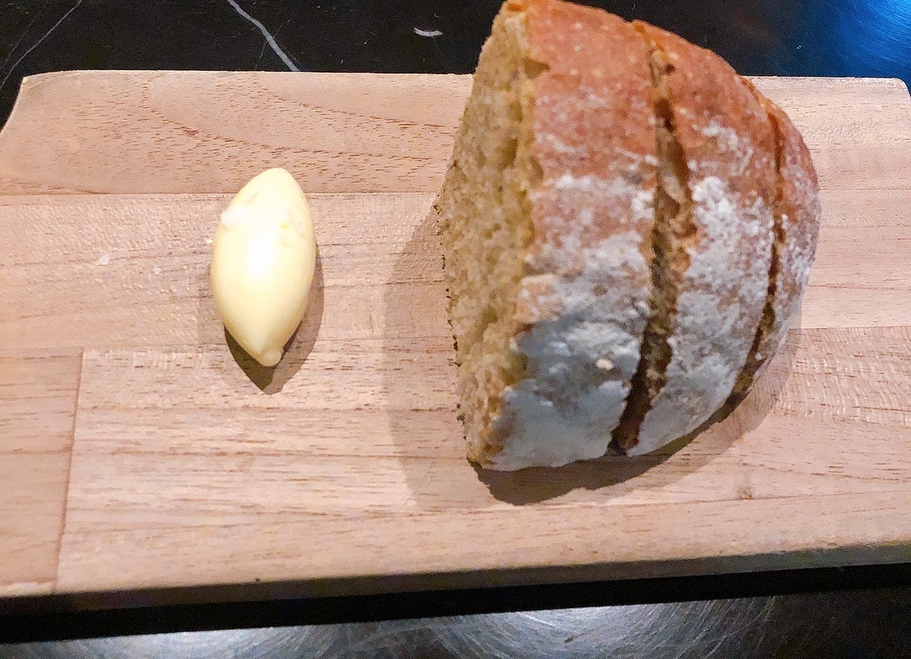 因為帶狗只能坐吧台區,點了晚間套餐和吧台單點,特別喜歡冷湯、軟殼蟹、酸種麵包還有米型麵。