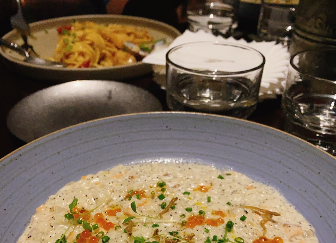 食物非常好吃,黑松露燻鮭魚燉飯超棒。
