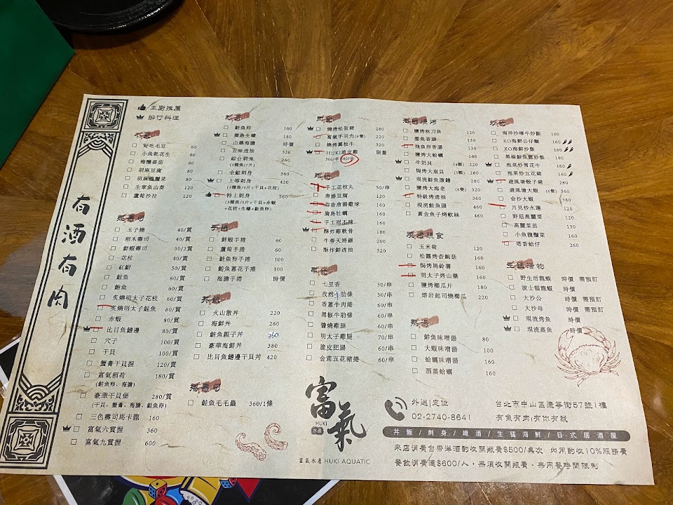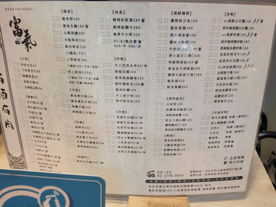 2024最新在地推薦餐廳的菜單_HUKI富氣水產的菜單、圖片