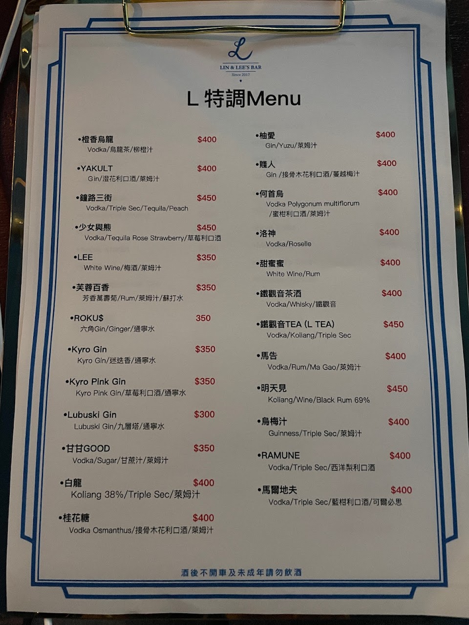今天點的桂花糖好喝,由老闆娘推薦,是比較偏甜的口感,印象中有Vodka Osmanthus 、接骨木花利口酒和萊姆汁,蠻清爽的,喝完微醺,希望有機會下次再回來試試其他的調酒